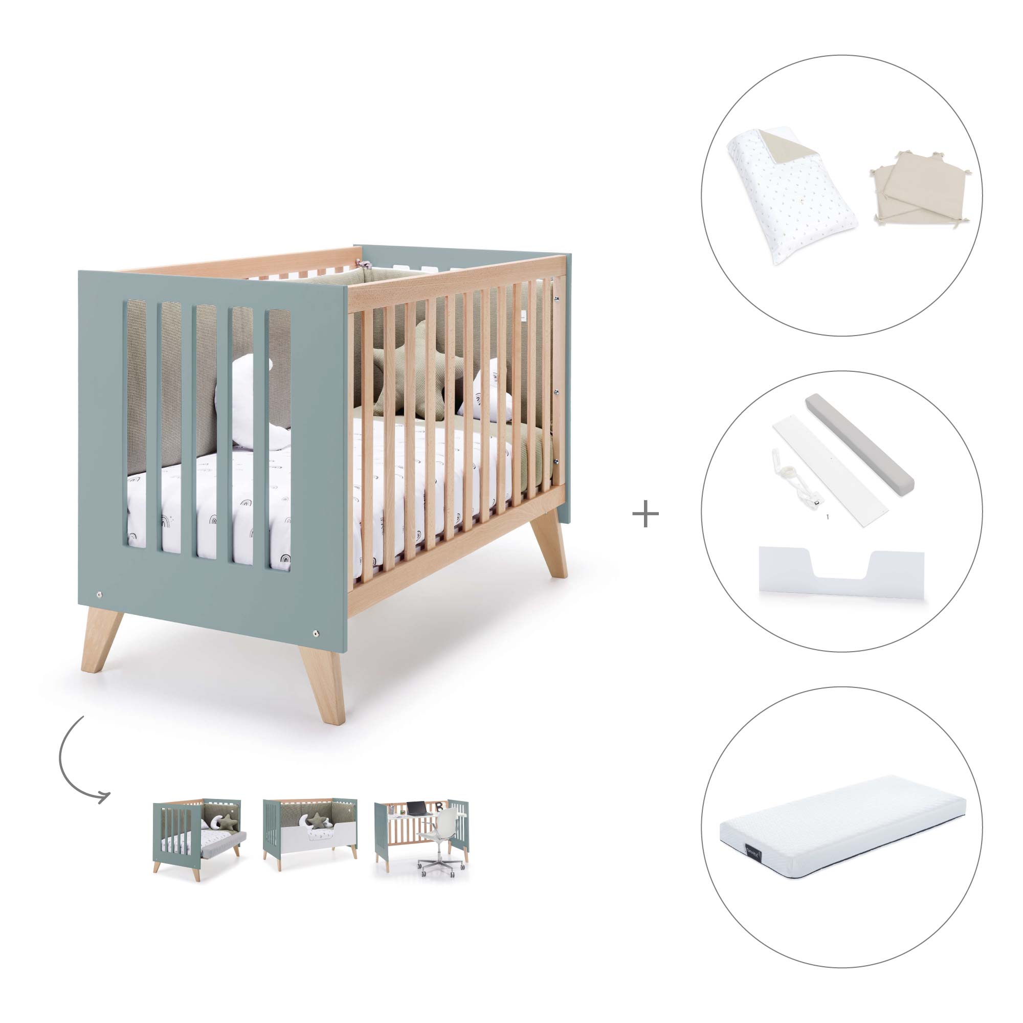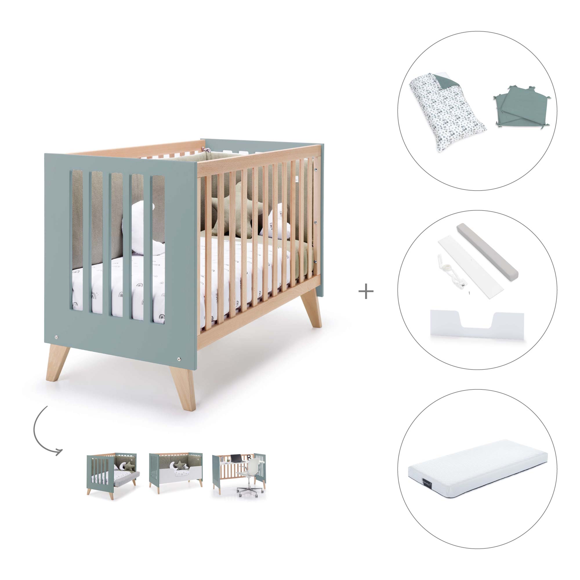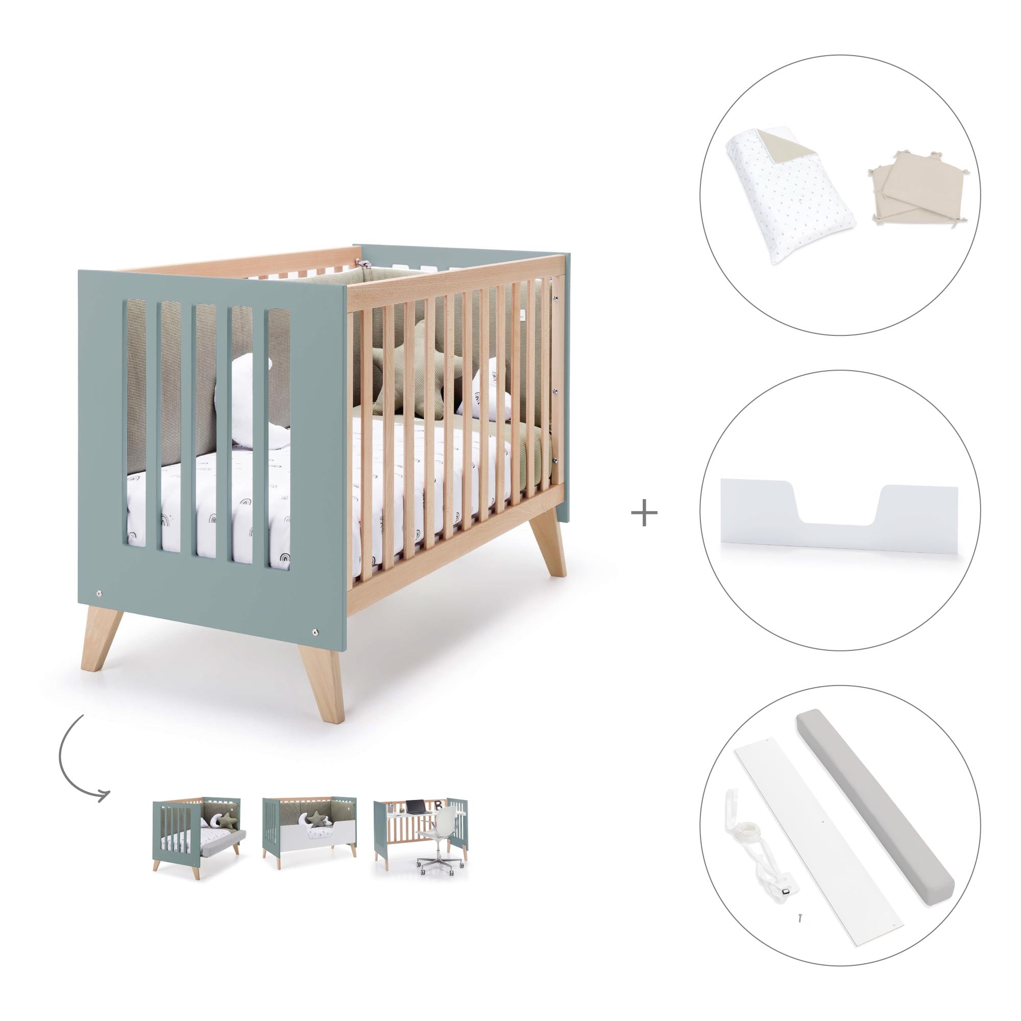 Während des ersten Lebensjahres des Babys können Sie das NEXO-Kinderbett in ein Beistellbett umbauen Kinderbett mit den Maßen 60x120 cm, Kauf des optionalen Beistell-Sets (Ref. WCO180-M70).
