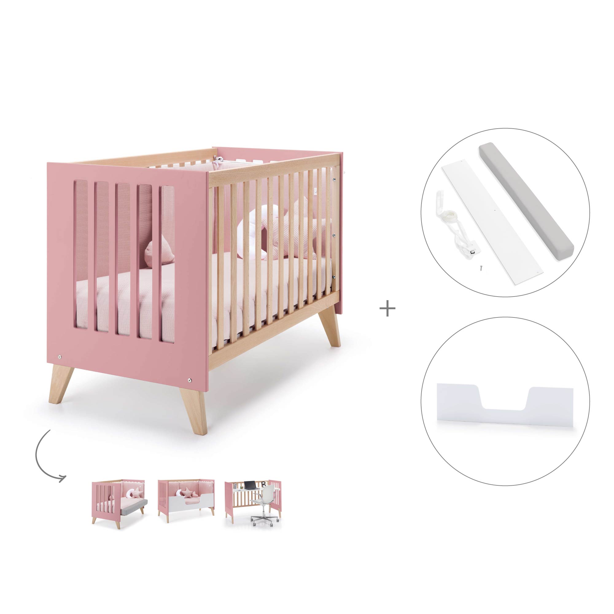 Während des ersten Lebensjahres des Babys können Sie das NEXO-Kinderbett in ein Beistellbett umbauen Kinderbett mit den Maßen 60x120 cm, Kauf des optionalen Beistell-Sets (Ref. WCO180-M70).