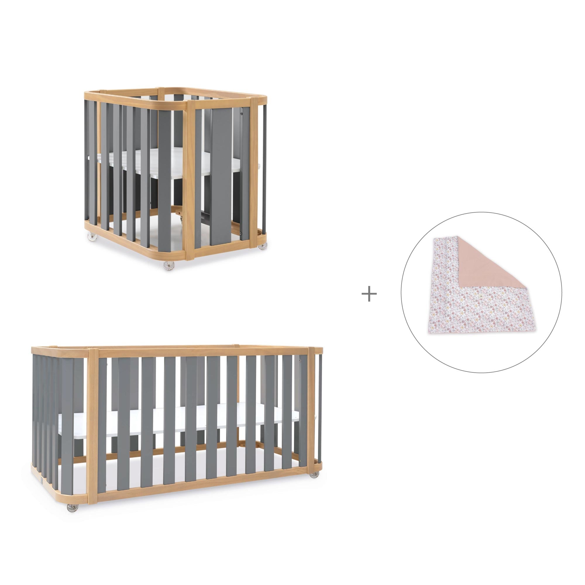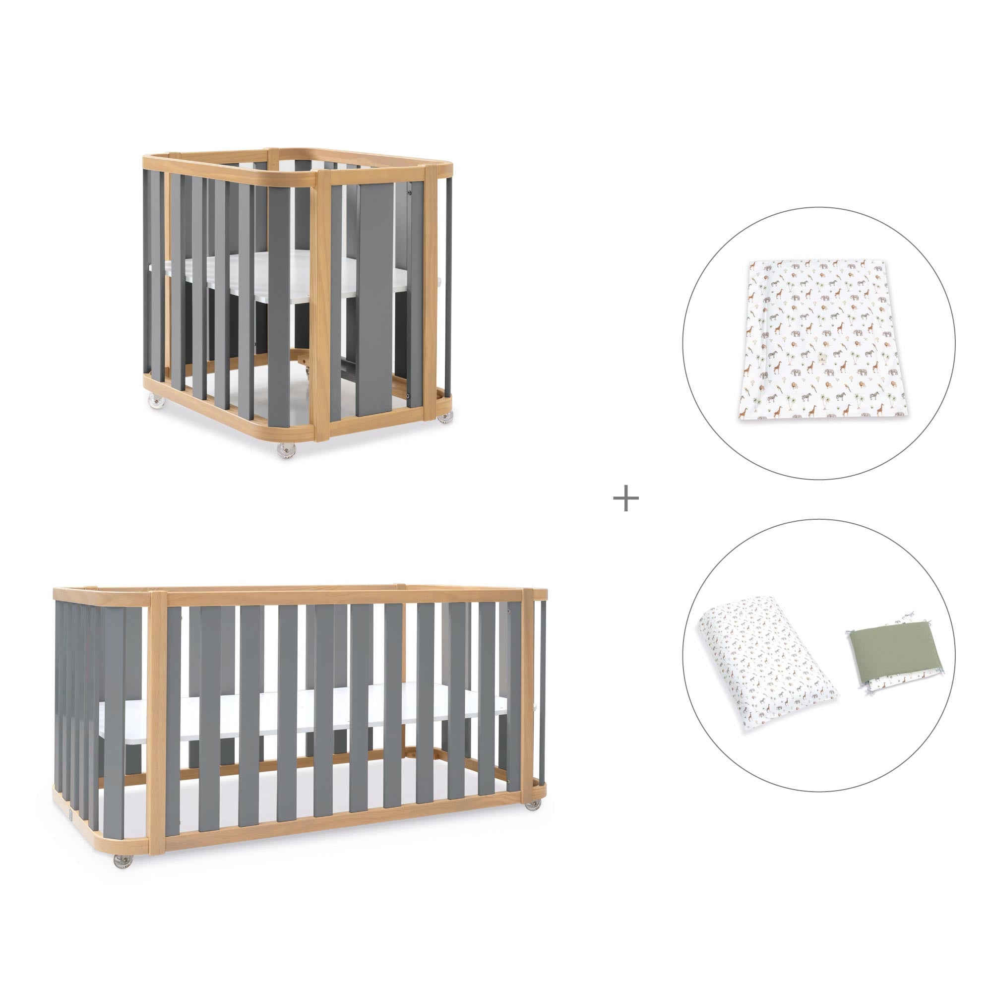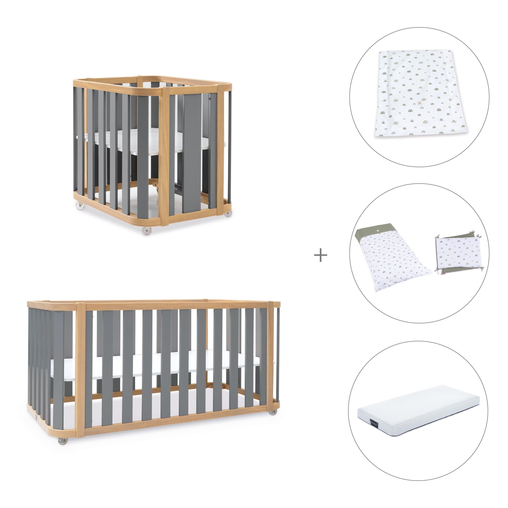 Babywiege, babybett und Bett (4in1) Holz/grau · Crea Plus Tre C351-M5058