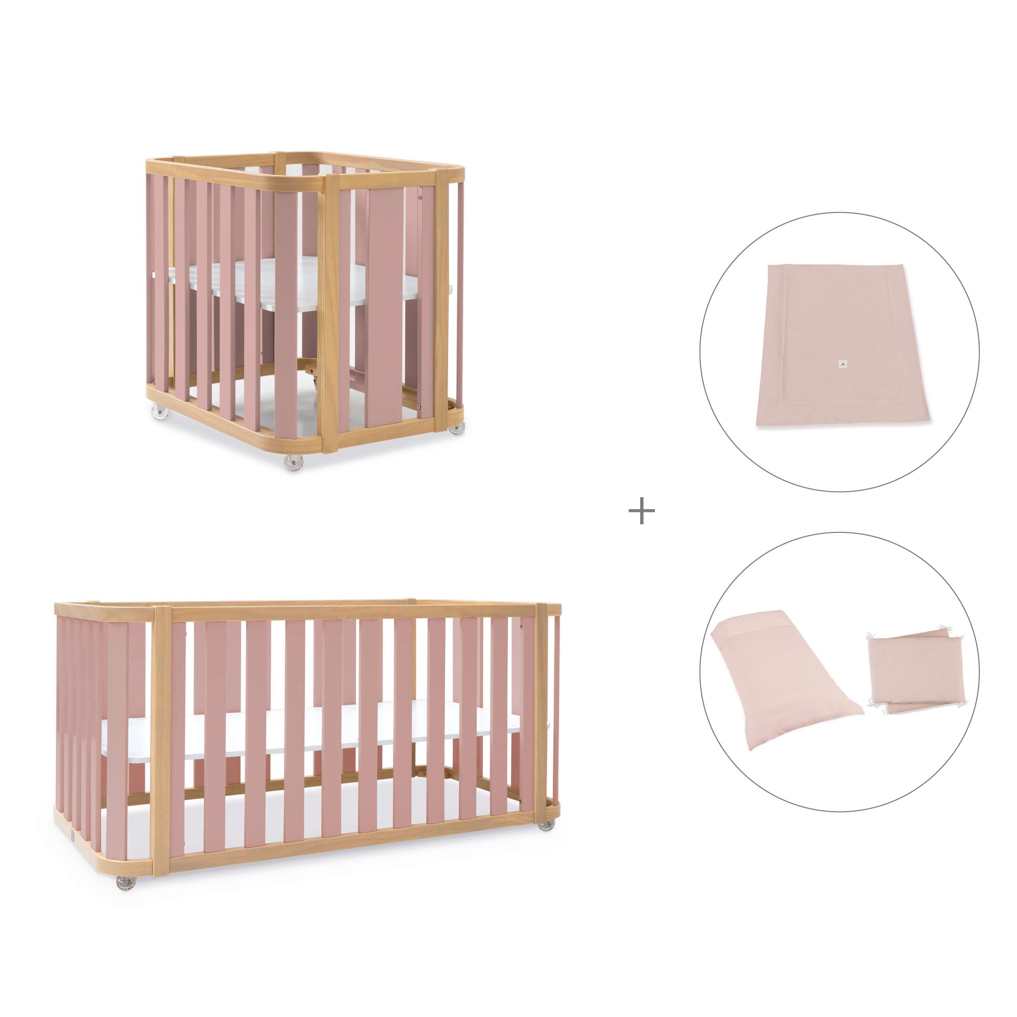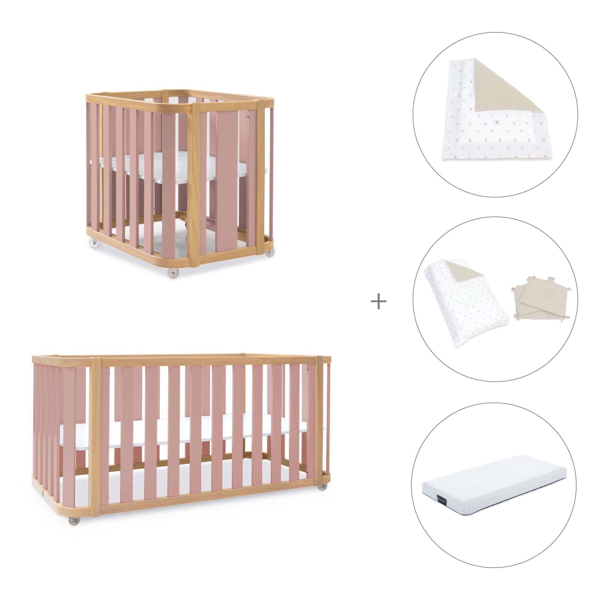Babywiege, babybett und Bett (4in1) Holz/rosa · Crea Plus Tre C351-M5059