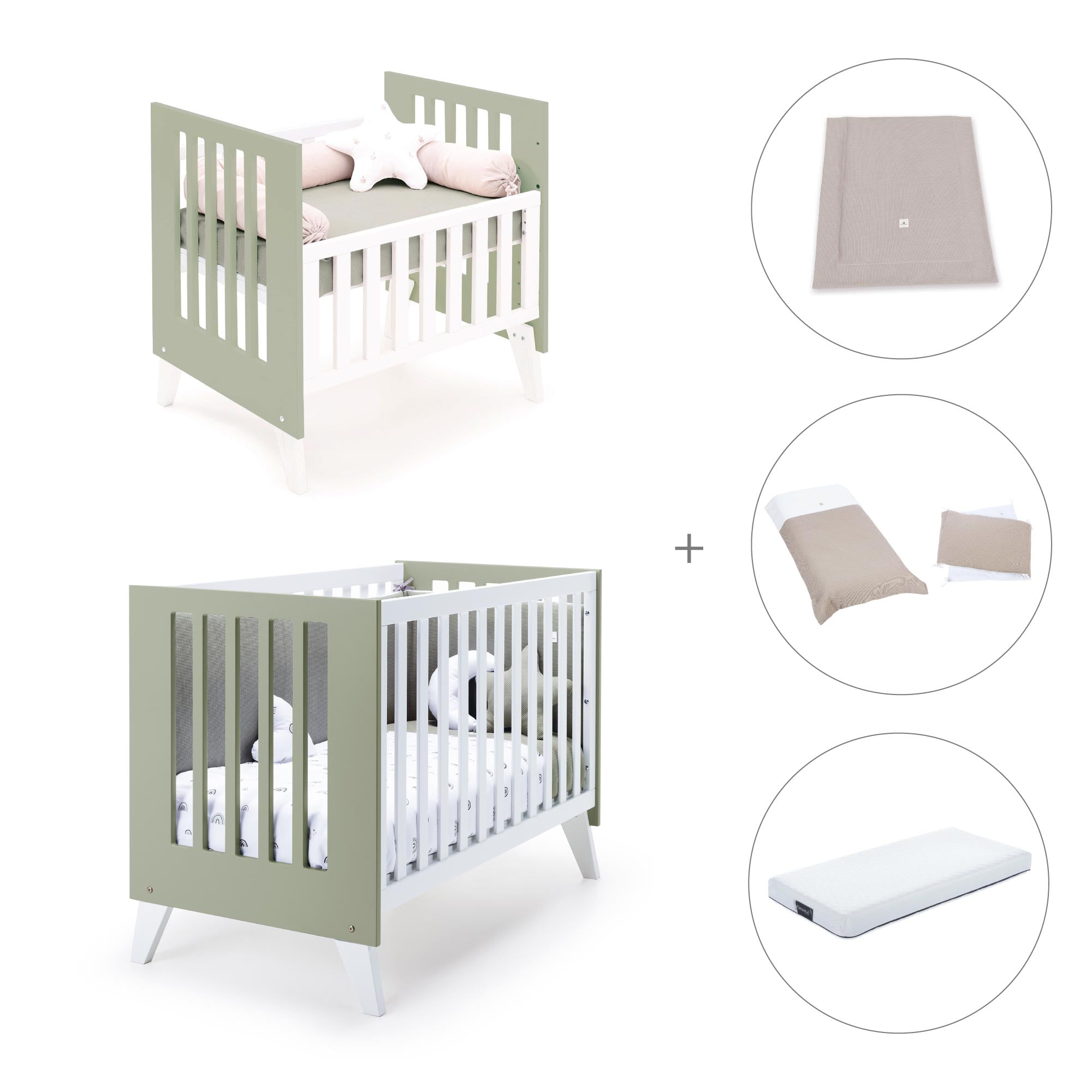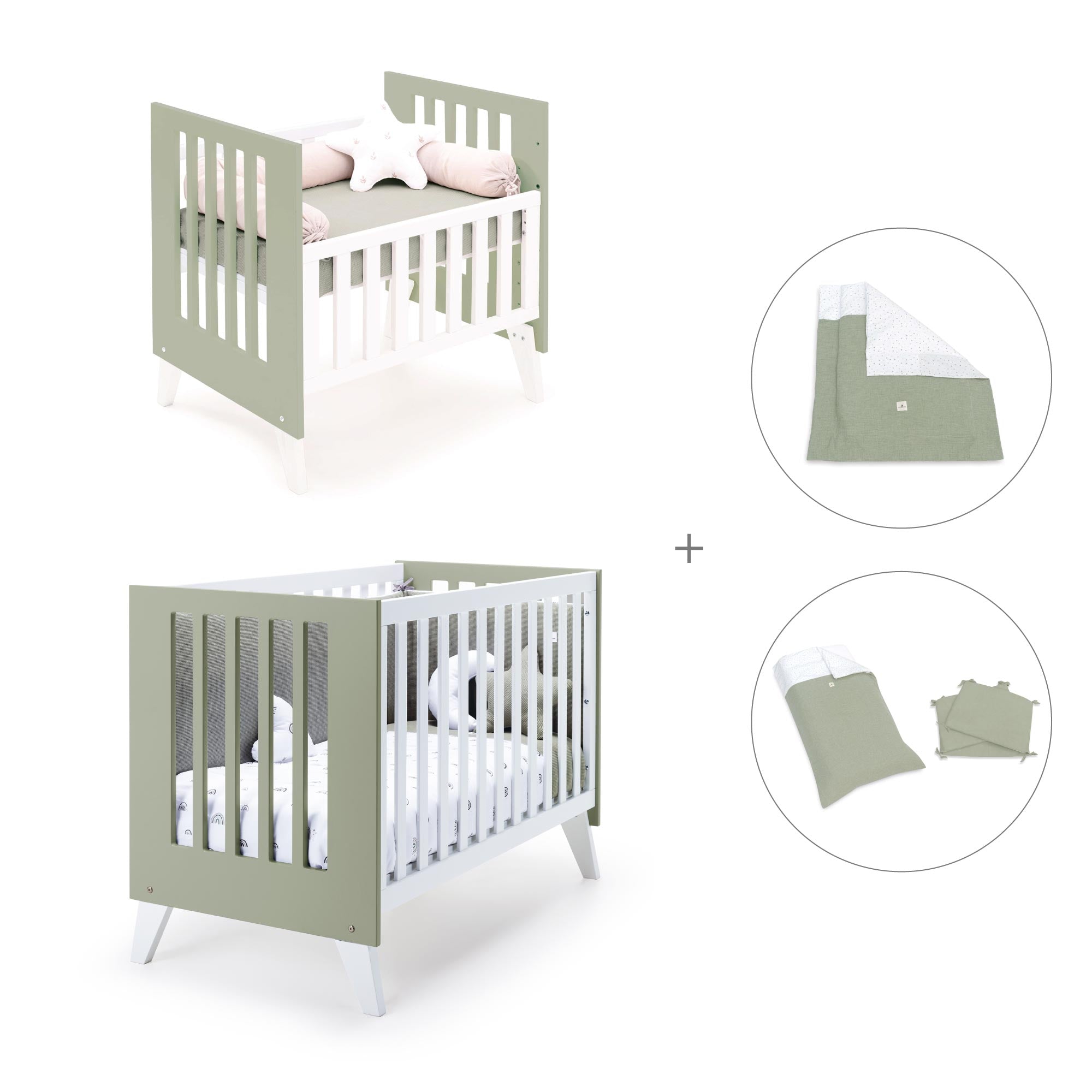 Berceau et lit bébé tout en un (7en1) blanc/vert-olive · Nexo Tre Erba