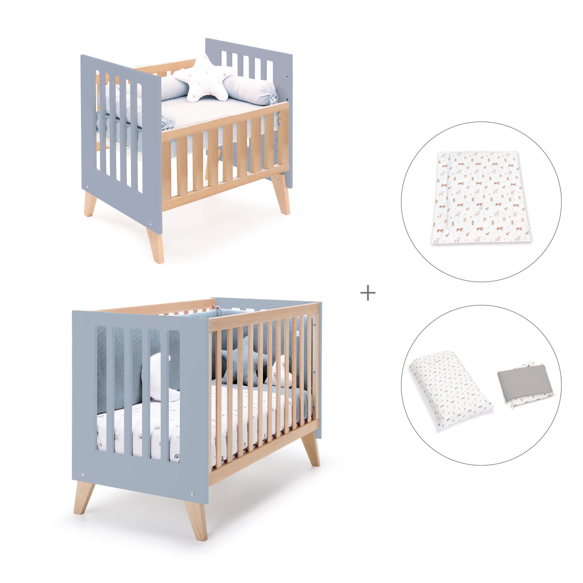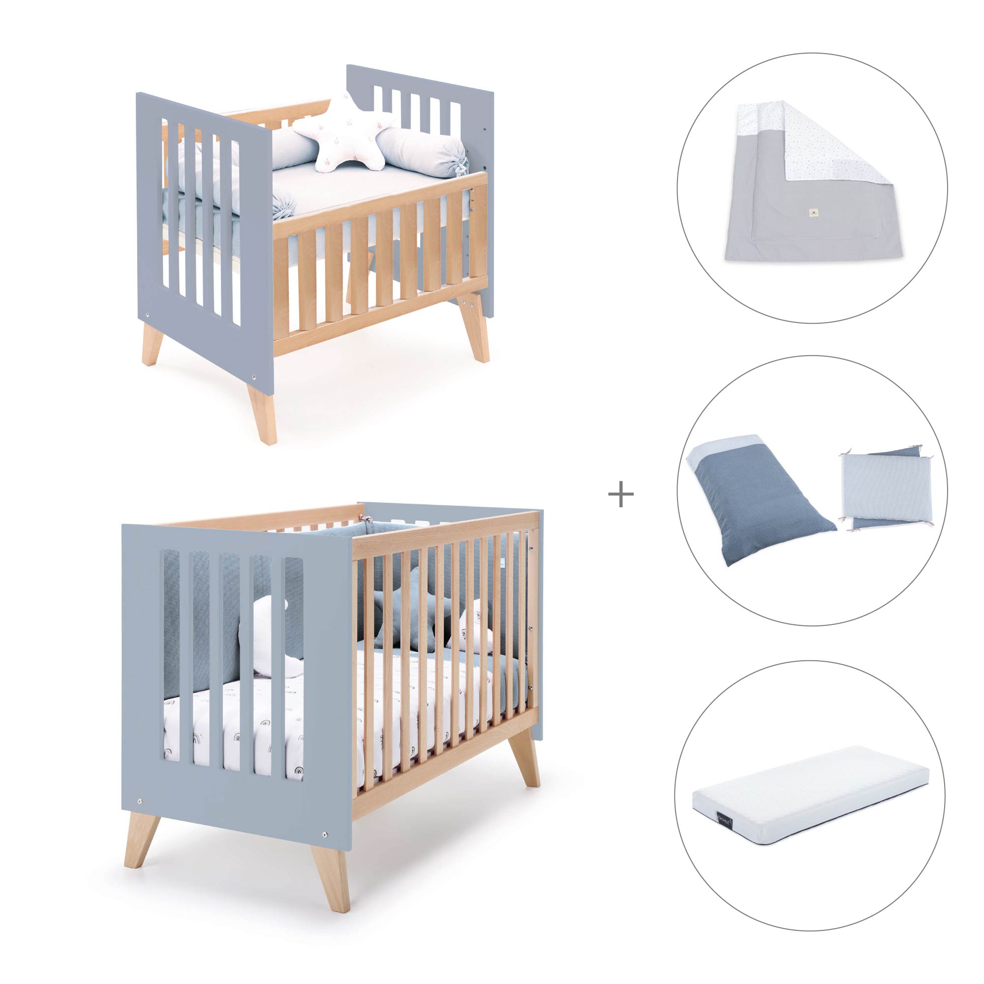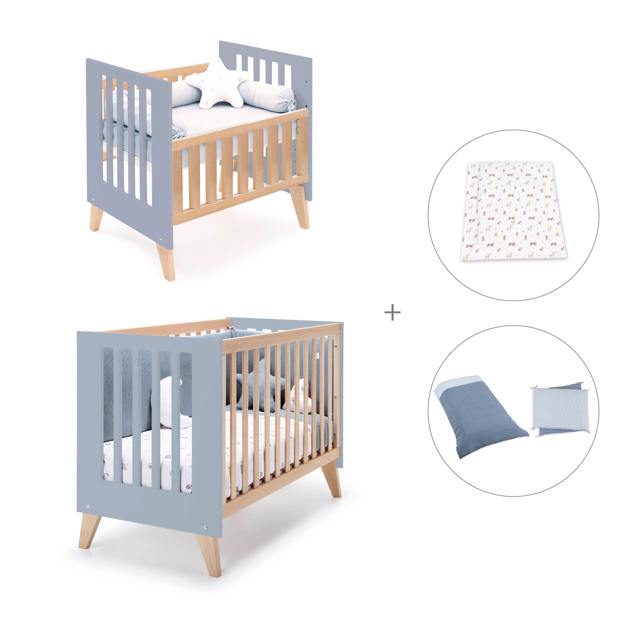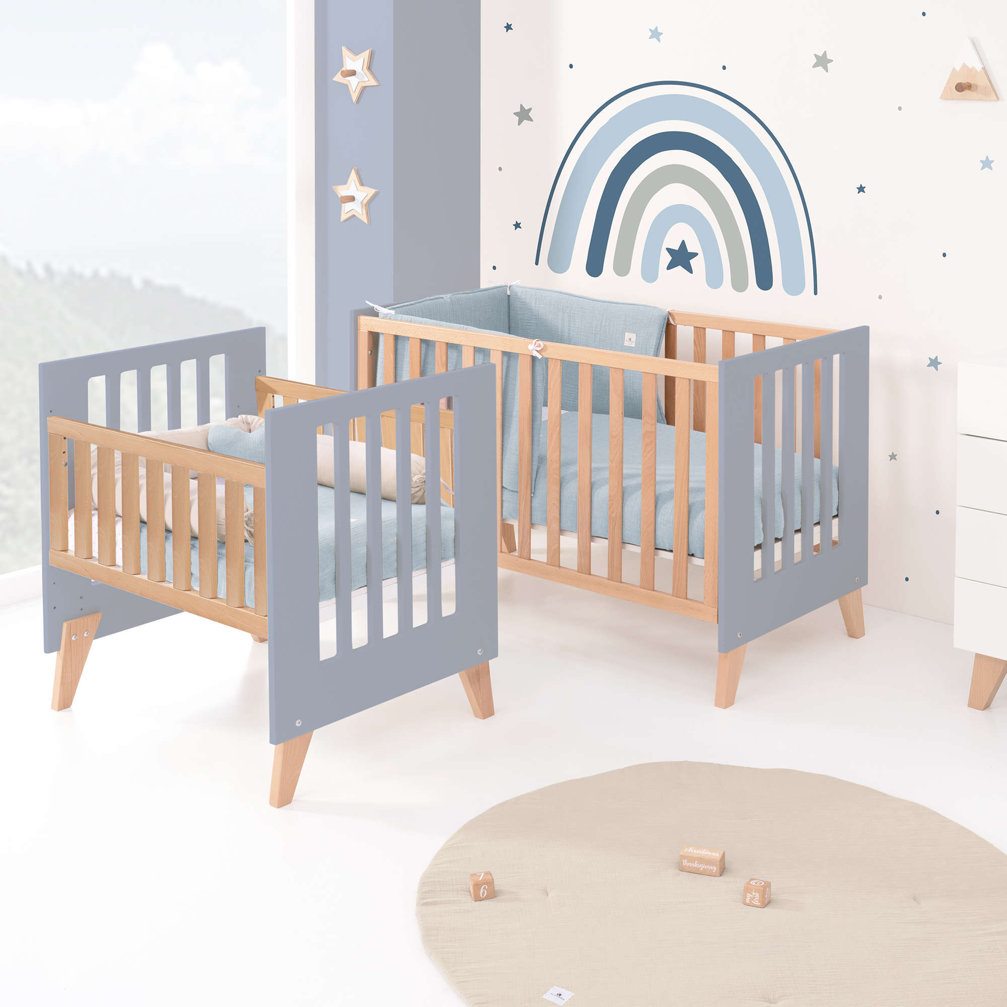 Berceau évolutif en lit bébé (7en1) bois/bleu · Nexor Tre Blu denim