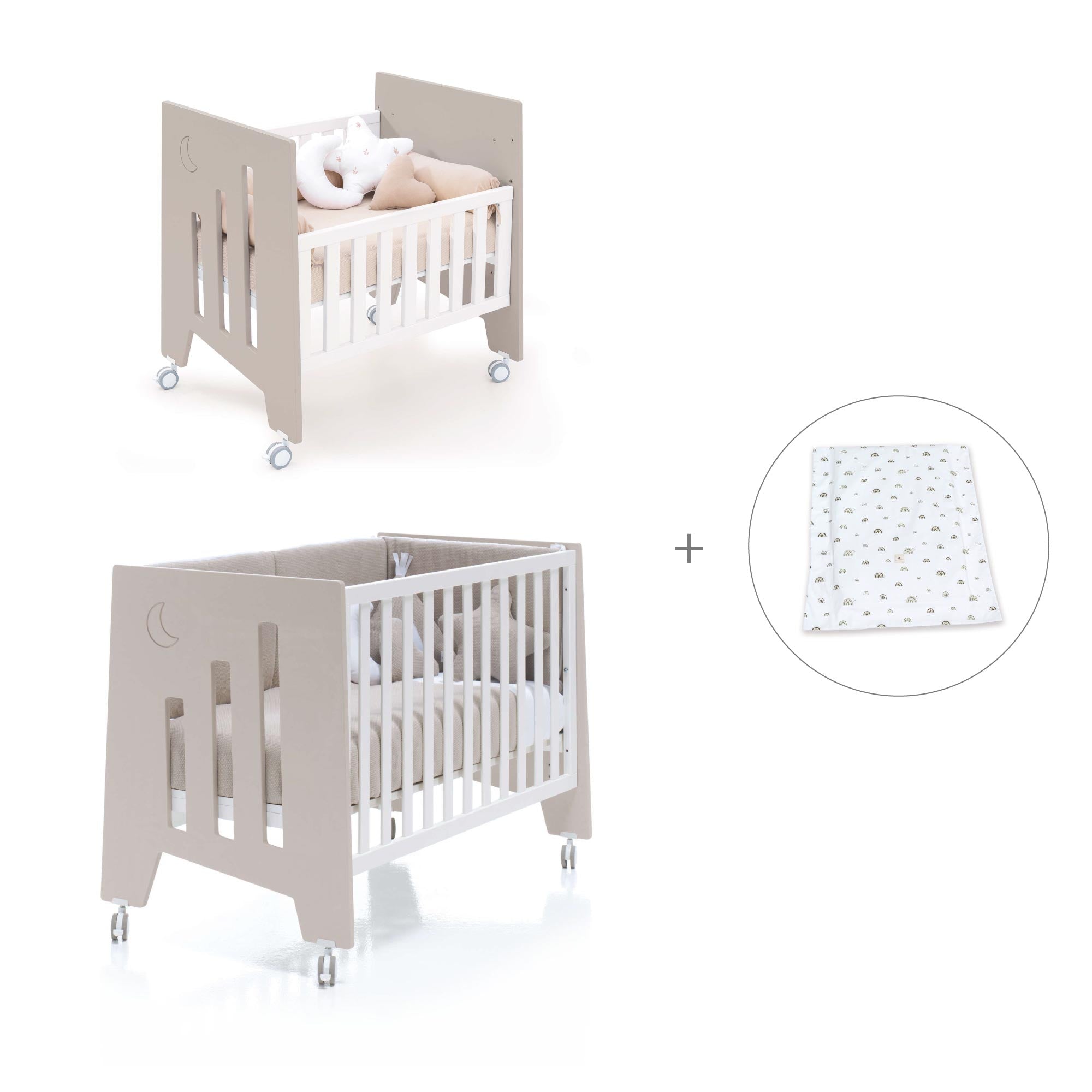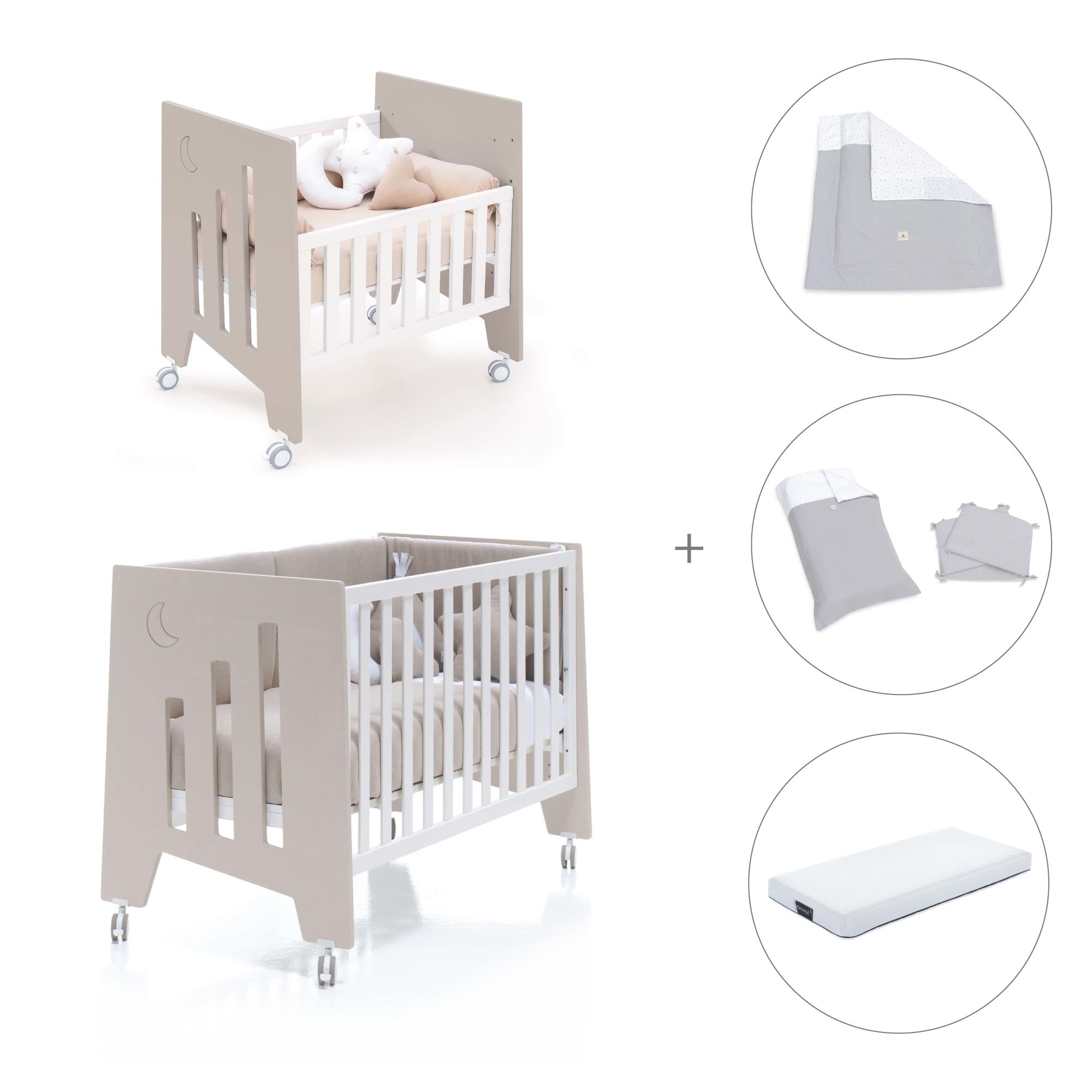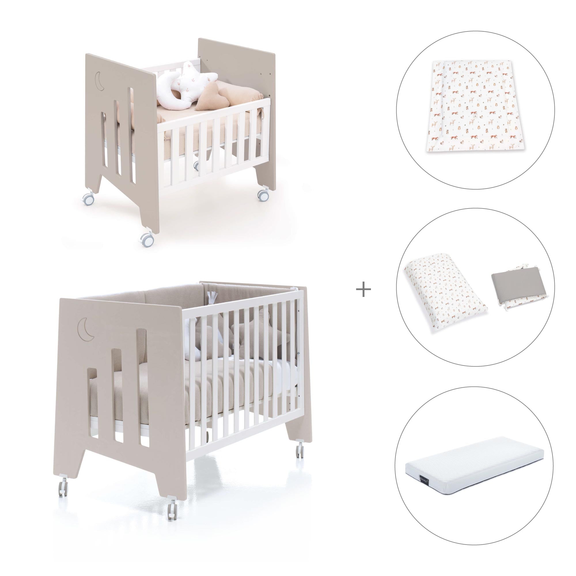 Una vez el bebé crezca y la minicuna se quede pequeña, puedes convertir la minicuna en una cuna de 60x120 cm, gracias al kit de conversión que incluye.