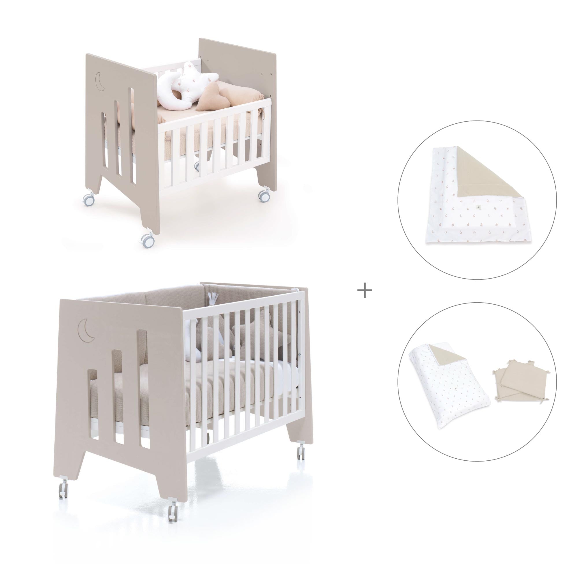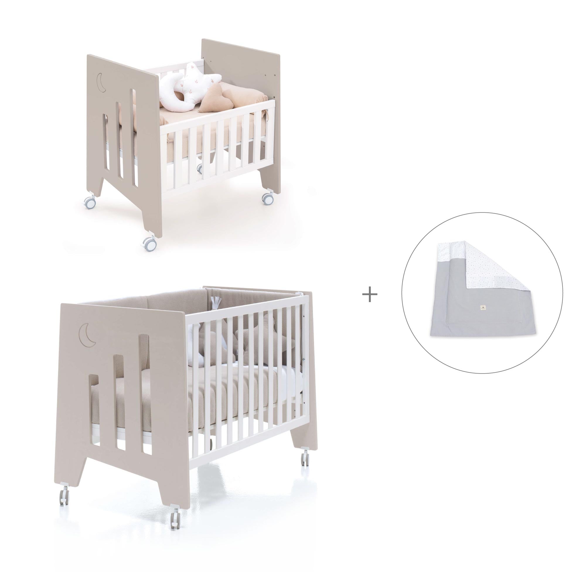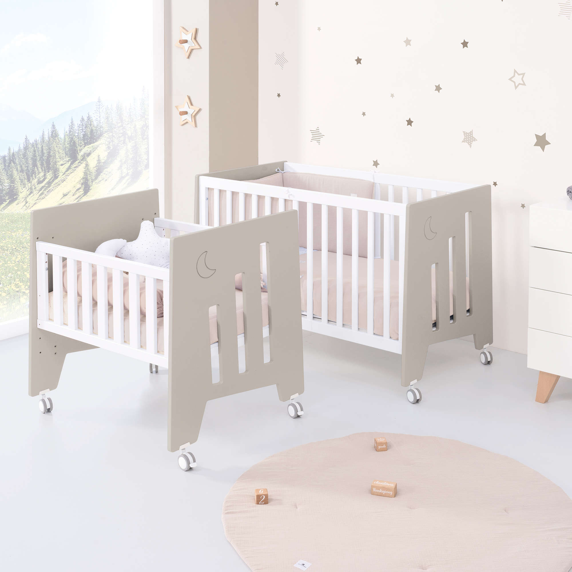 Una vez el bebé crezca y la minicuna se quede pequeña, puedes convertir la minicuna en una cuna de 60x120 cm, gracias al kit de conversión que incluye.