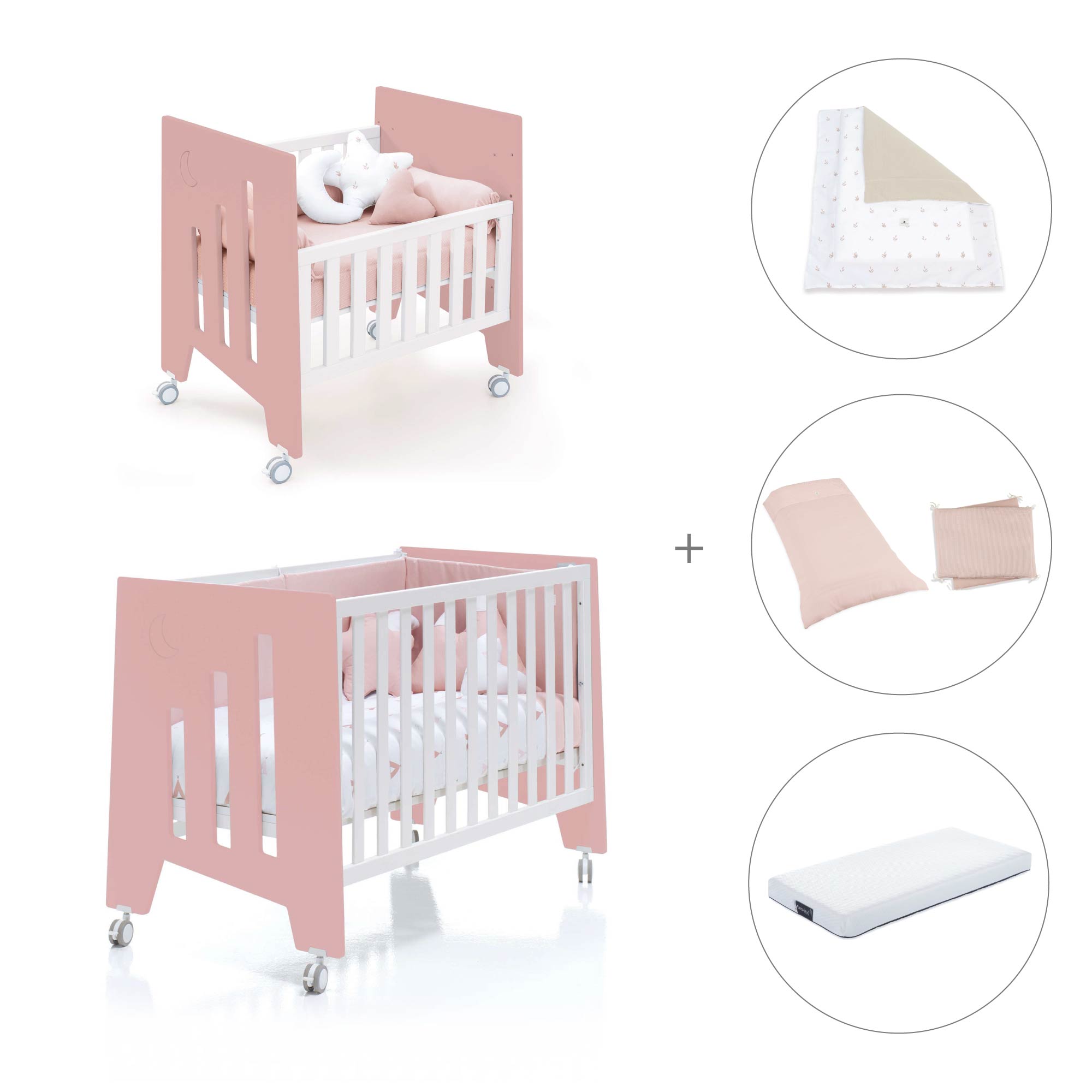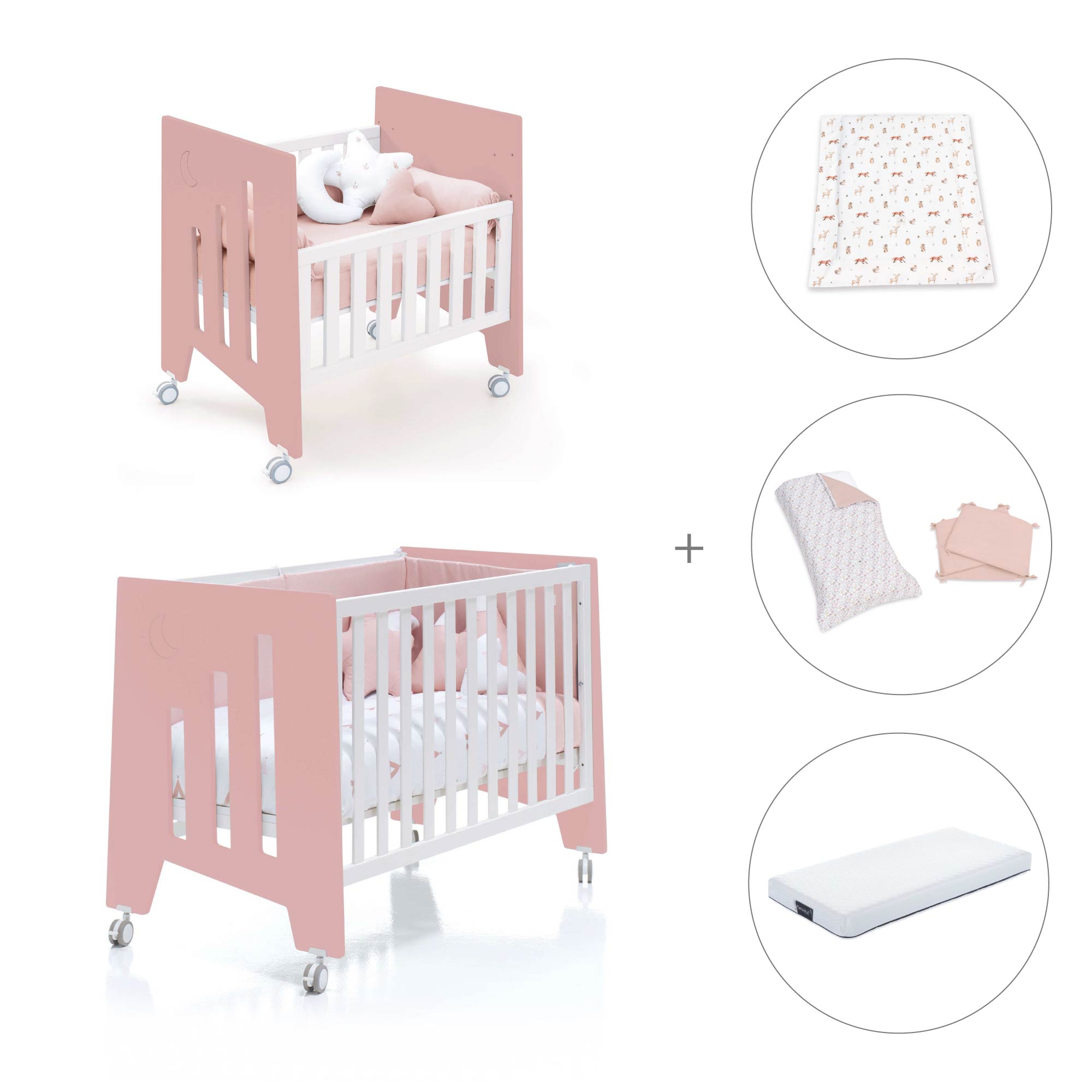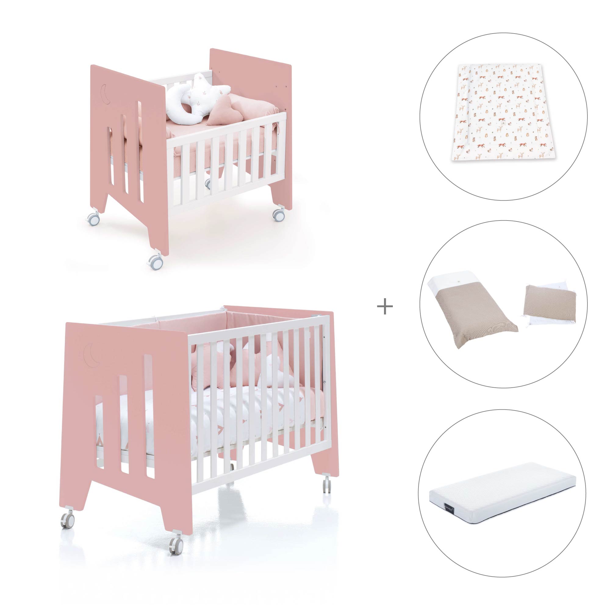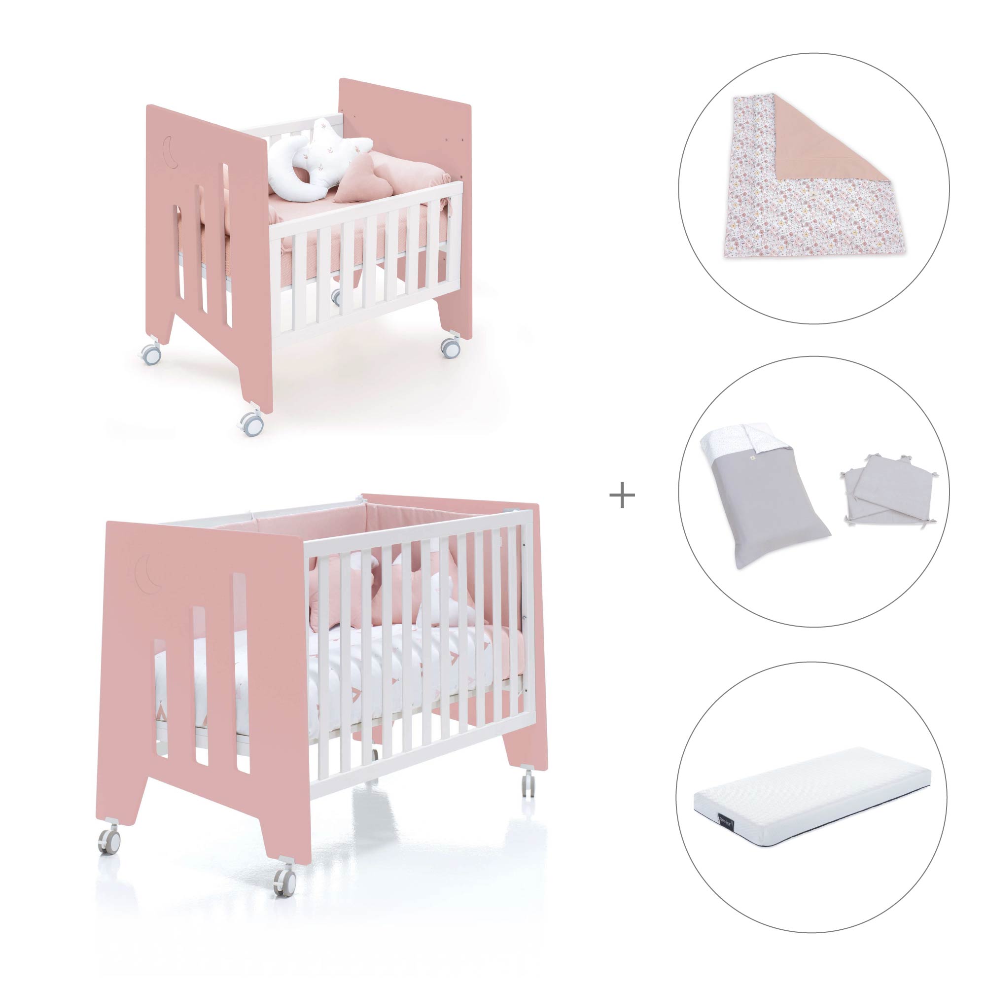 Berceau 60x80 cm et lit bébé 60x120 cm (7en1) rose · Omni Tre Quarzo