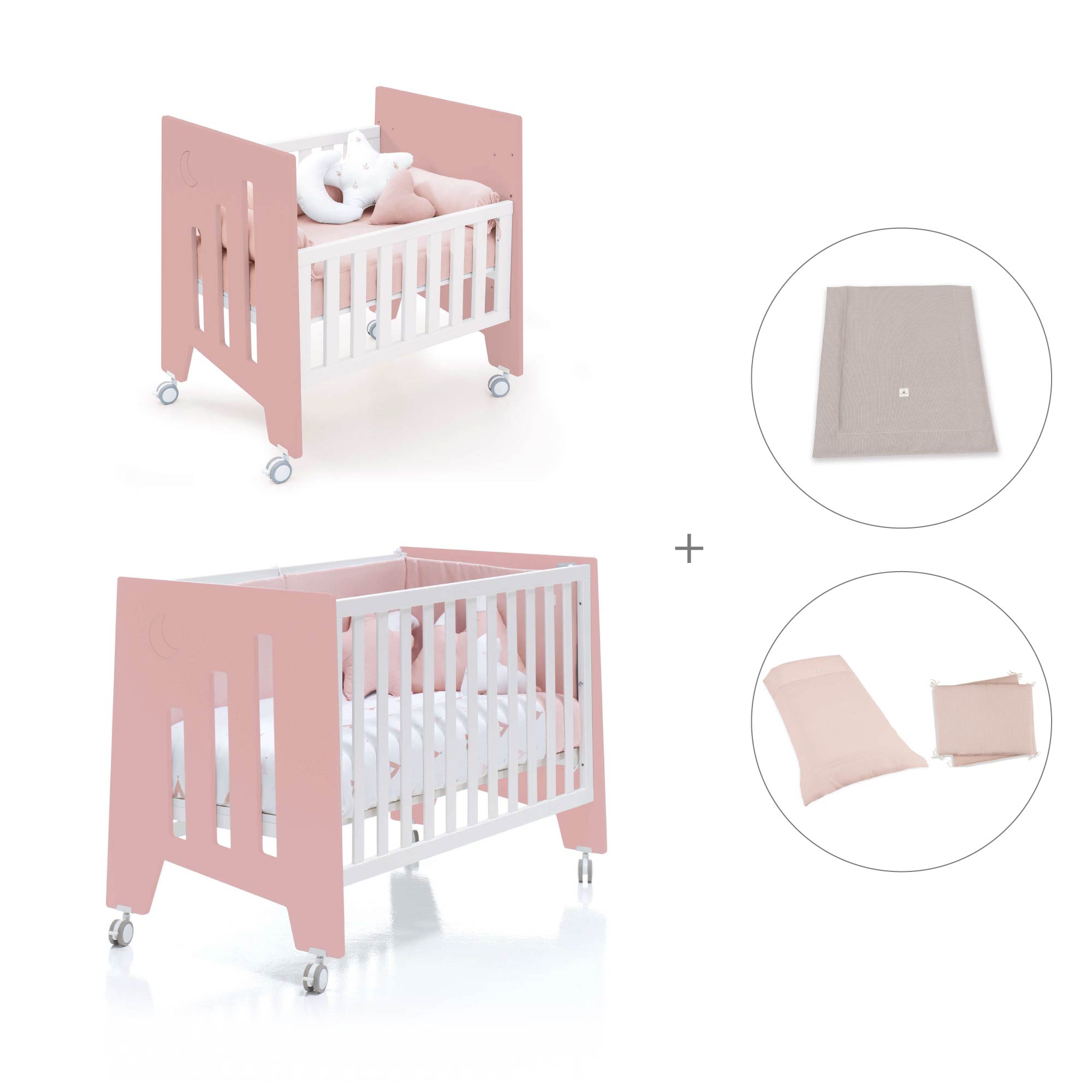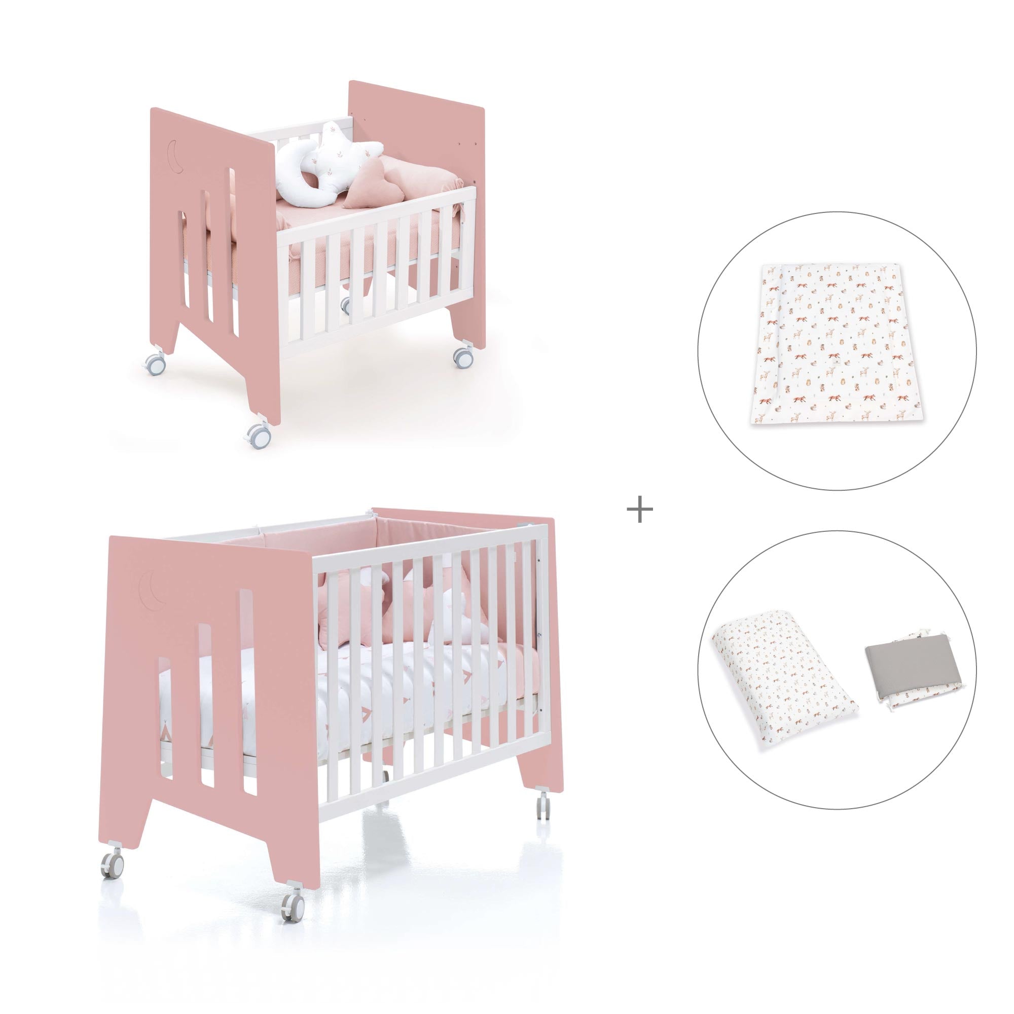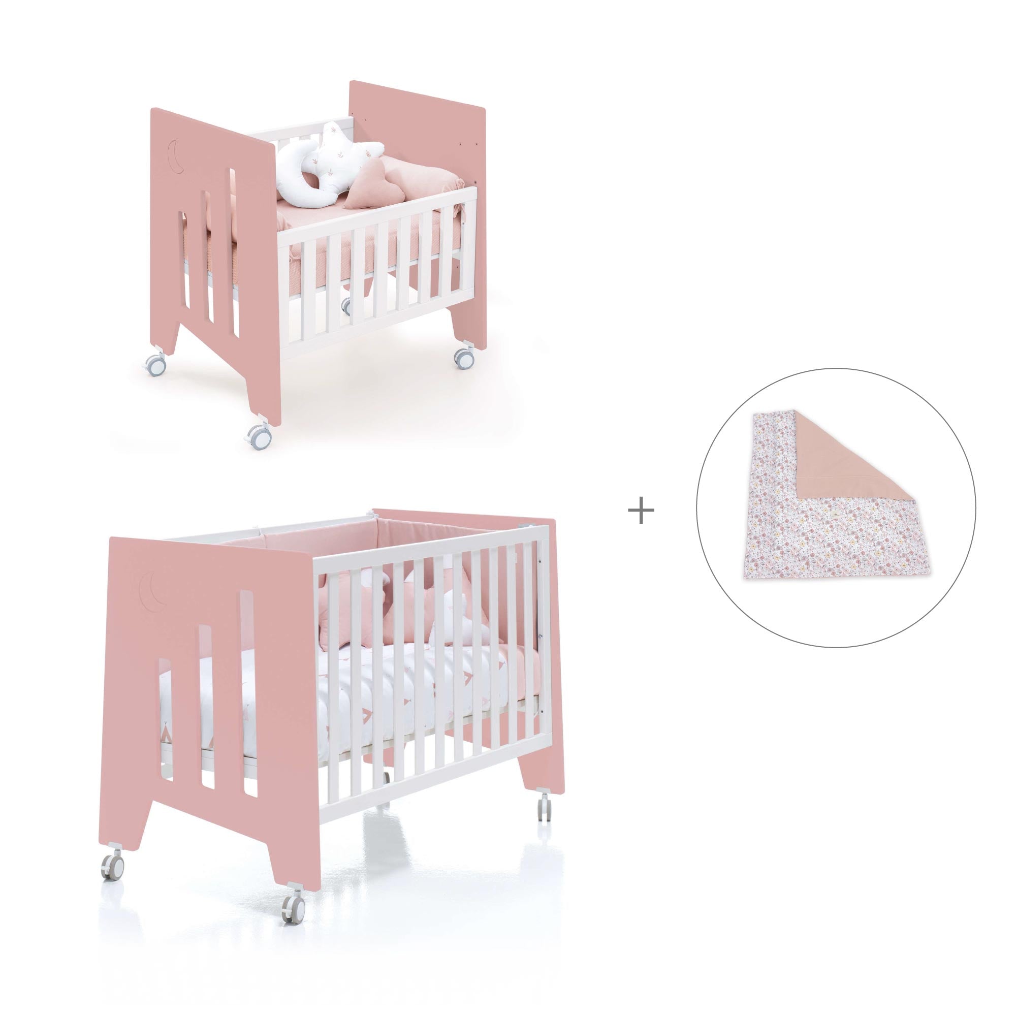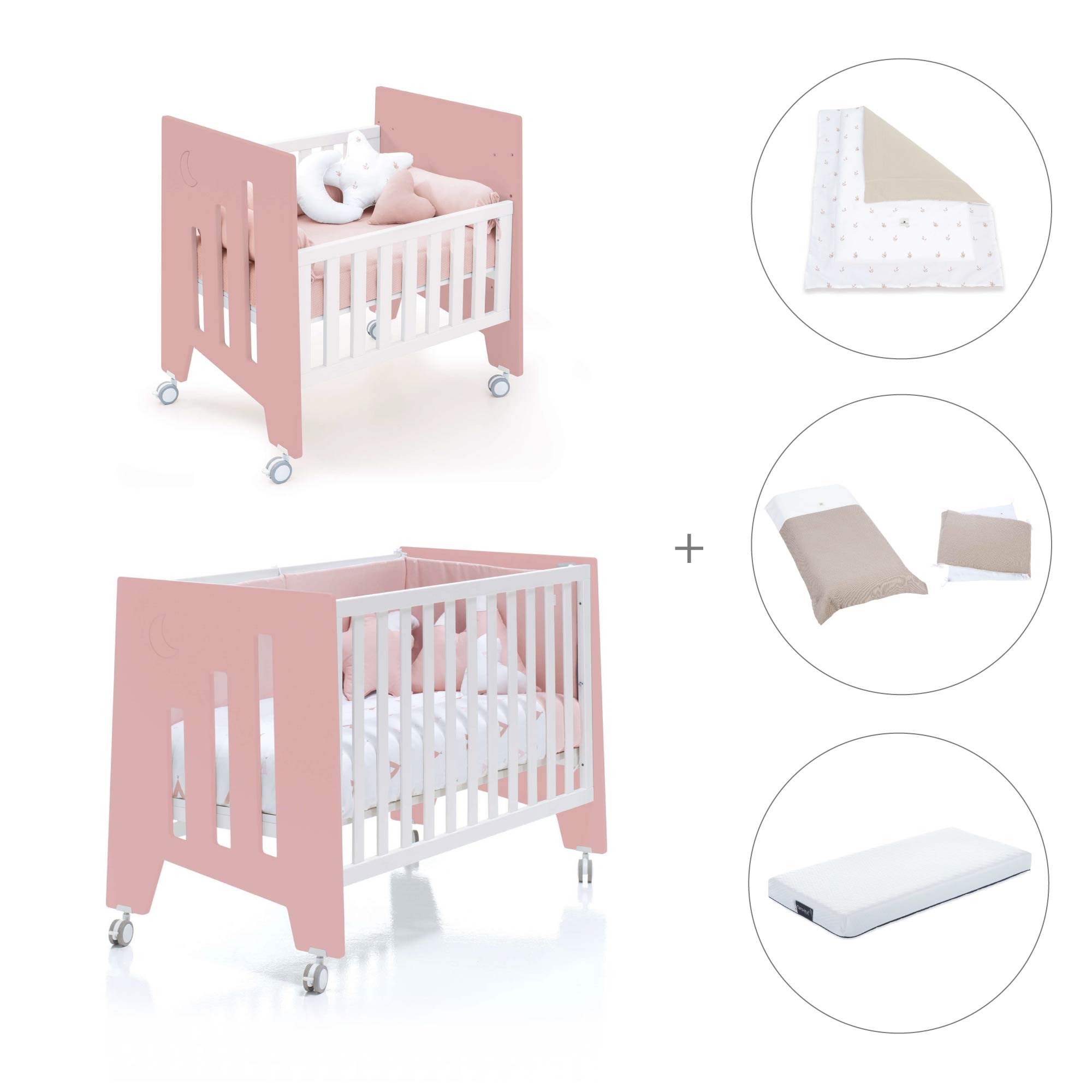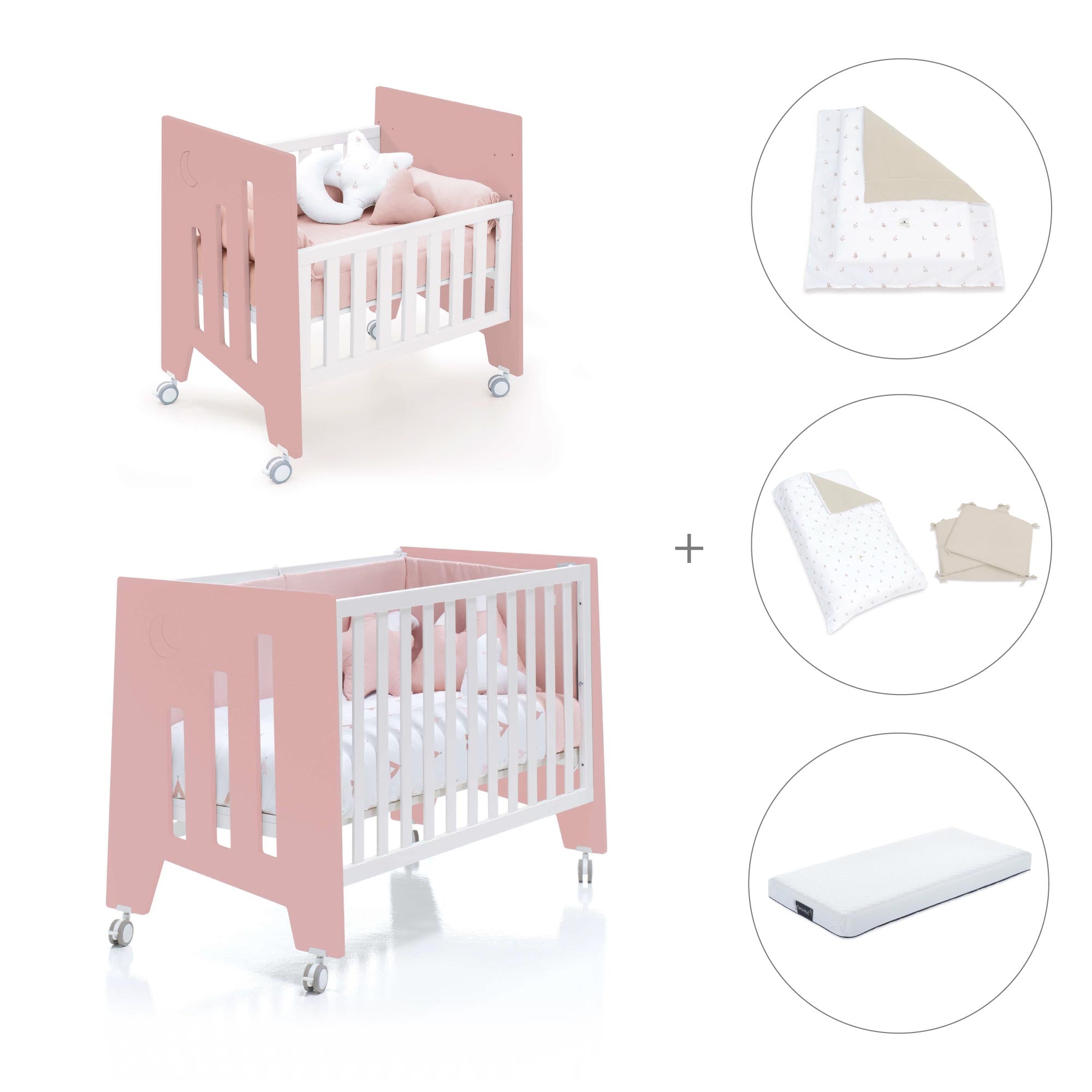 Berceau 60x80 cm et lit bébé 60x120 cm (7en1) rose · Omni Tre Quarzo
