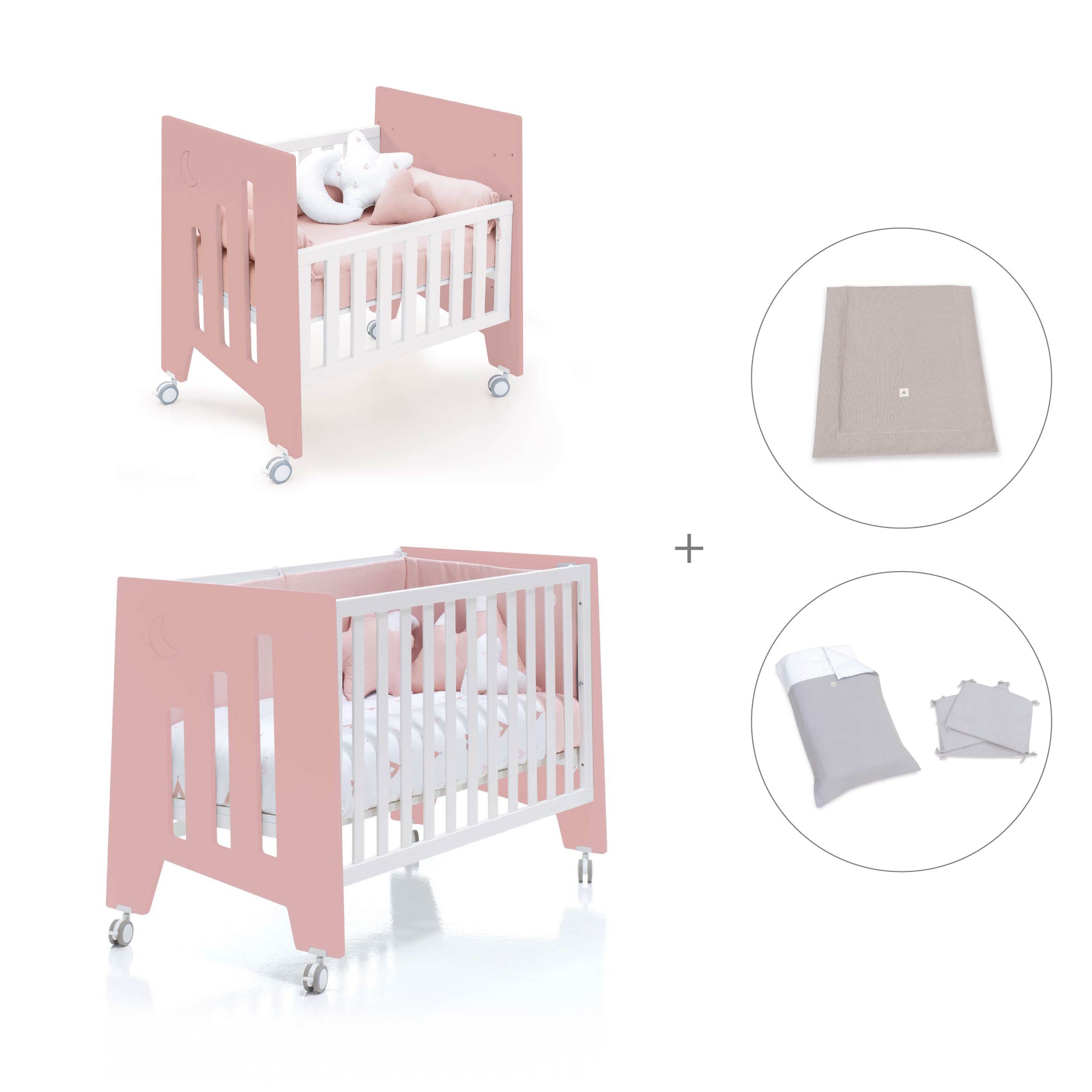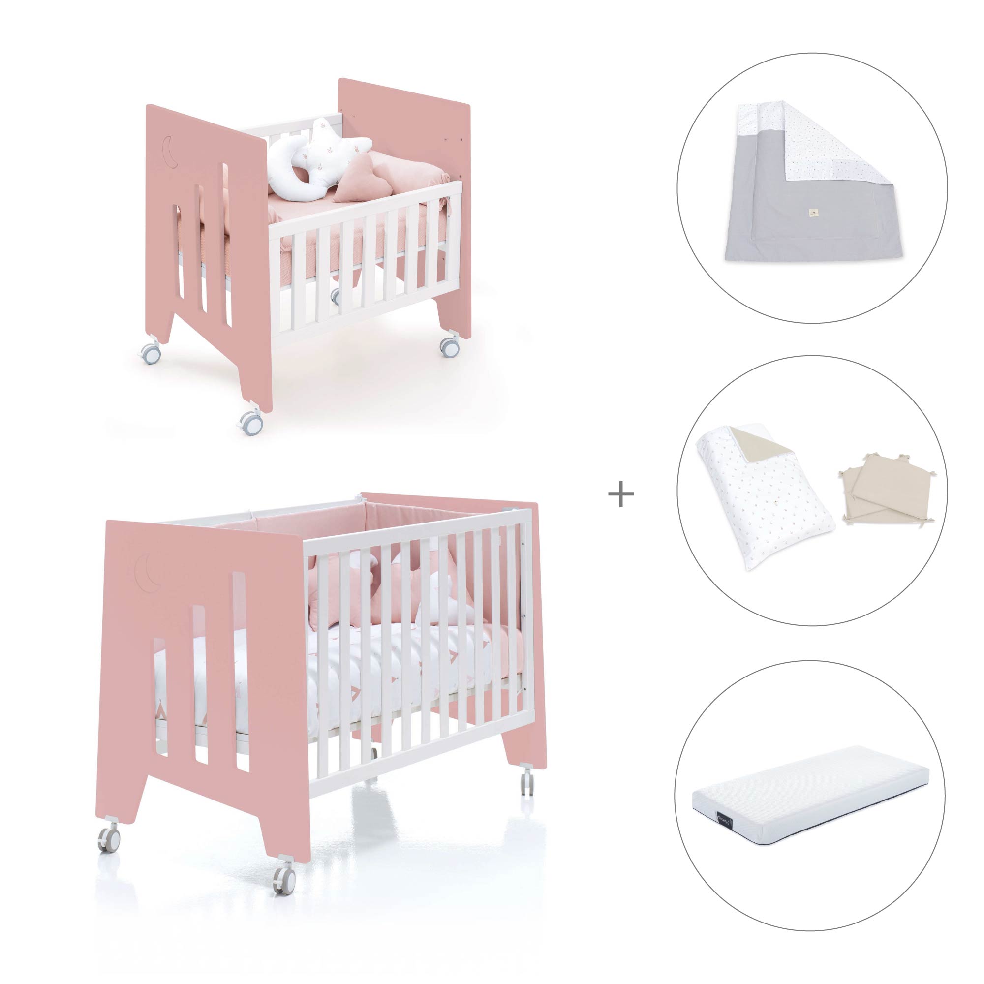 Una vez el bebé crezca y la minicuna se quede pequeña, puedes convertir la minicuna en una cuna de 60x120 cm, gracias al kit de conversión que incluye.