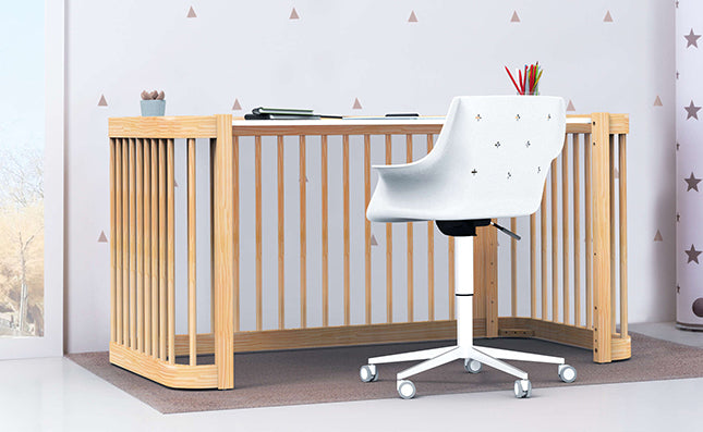 Lorsque vous arrêtez de l'utiliser comme lit ou berceau (puisque votre petit est déjà passé au junior lit ), vous pouvez transformer le berceau Crea en bureau, de manière pratique et rapide (sans éléments supplémentaires) que vous pourrez utiliser pendant de nombreuses années et tirer le meilleur parti de votre investissement.