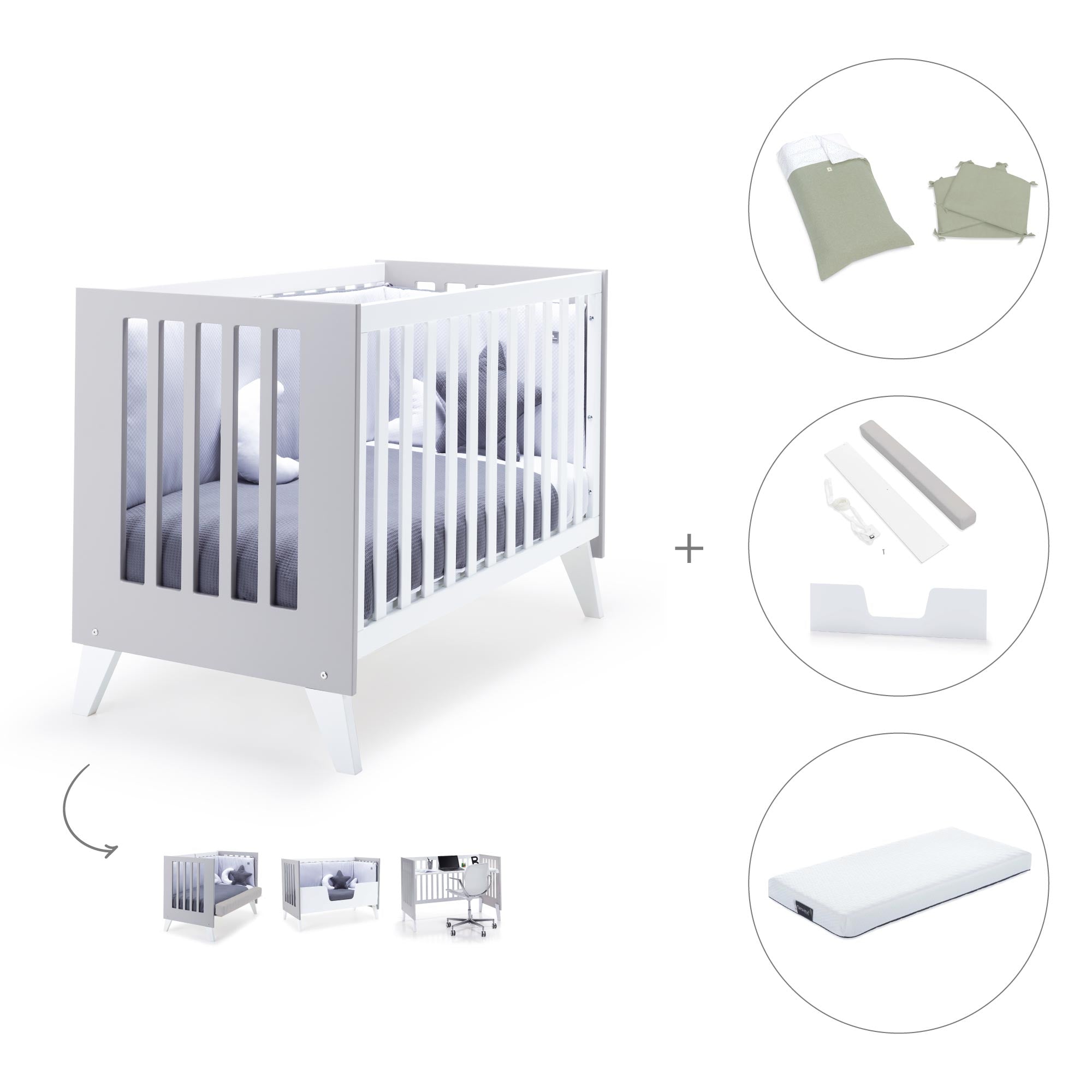 Cuna-sofá 60x120cm convertible en escritorio