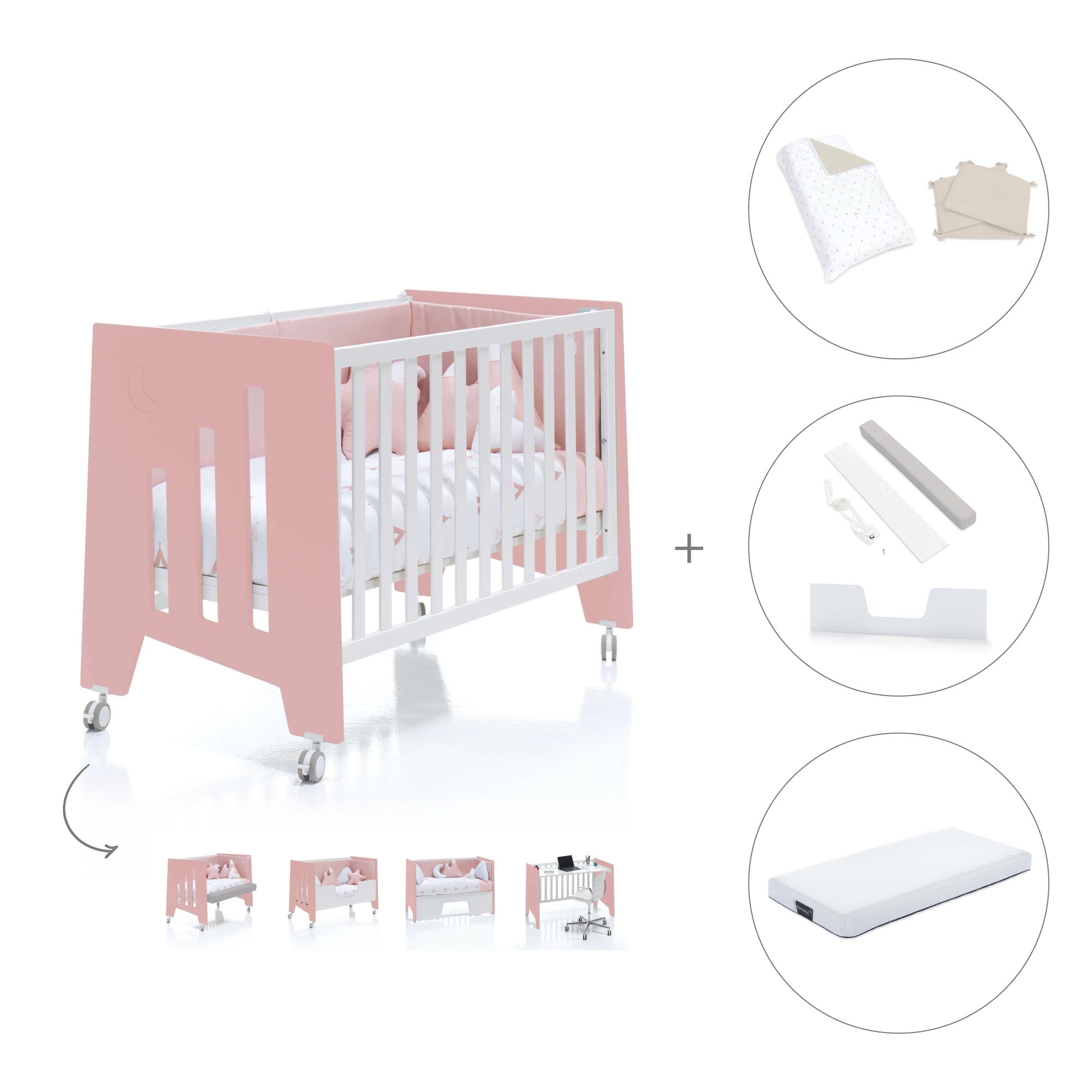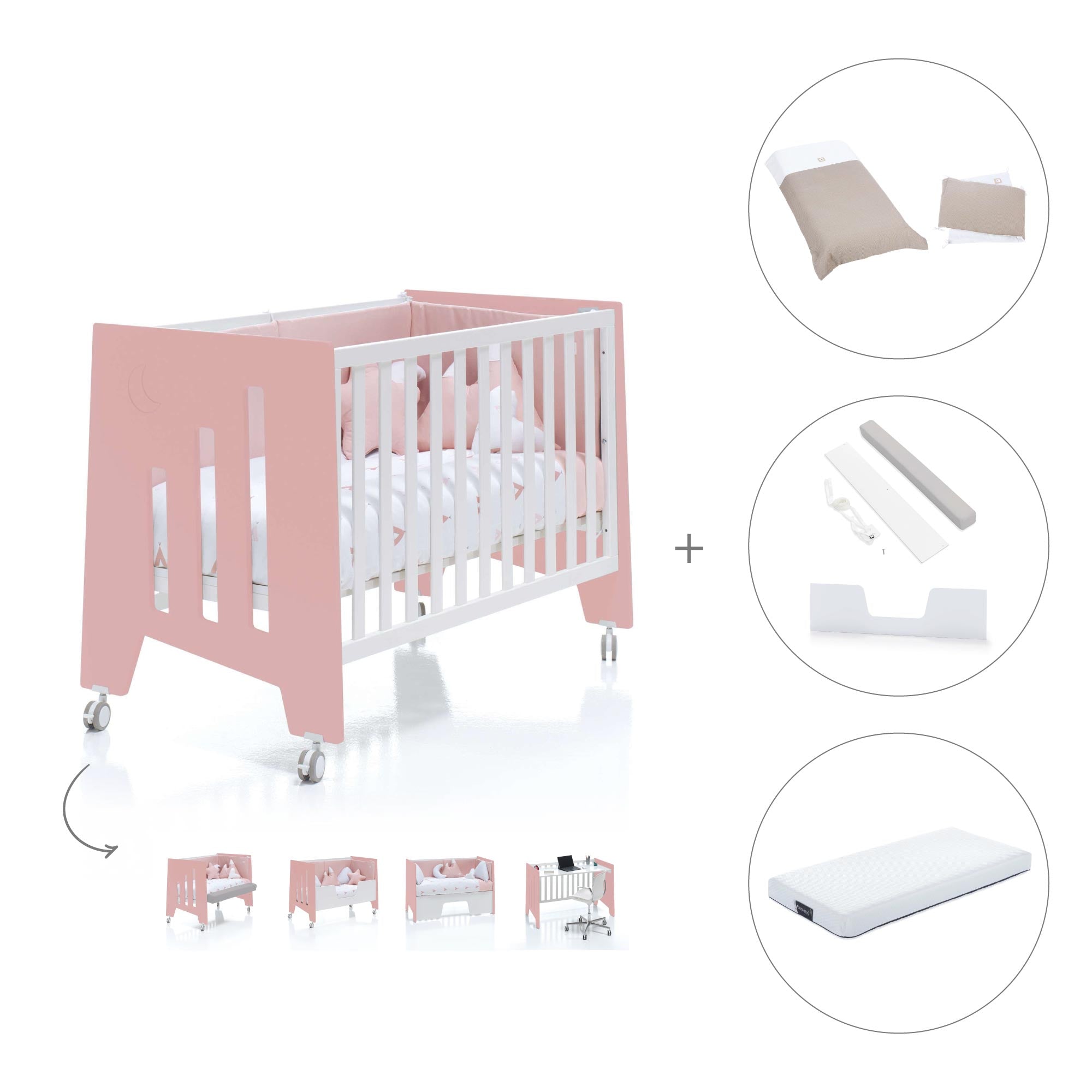 Lit bébé cododo 60x120 cm (5en1) rose/blanc · Omni Due Quarzo