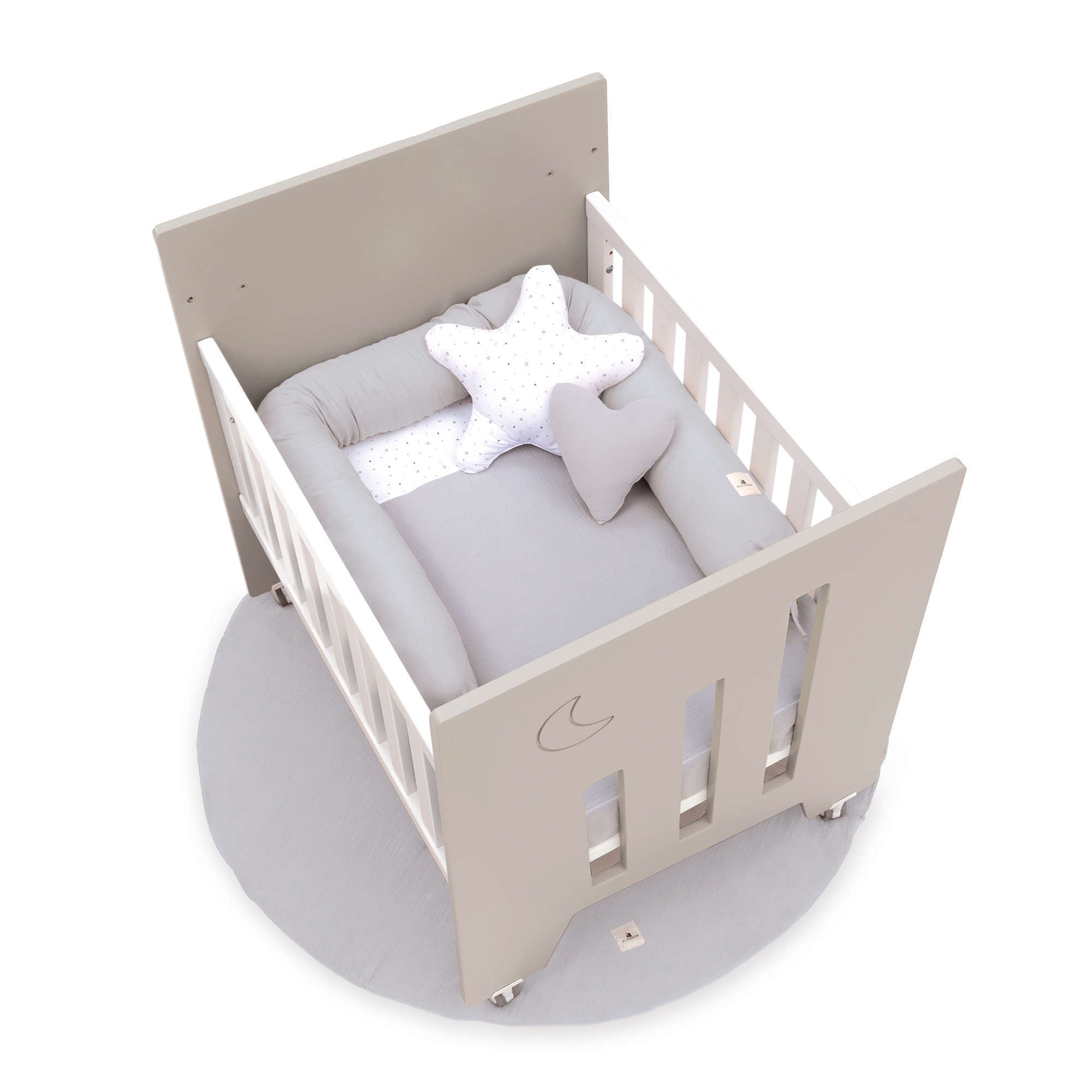 Para poder practicar colecho seguro, deberás de ajustar la altura de la barandilla y del somier de la minicuna a la altura idónea de la cama de matrimonio (si puede ser, unos centímetros por debajo, para evitar que el bebé pueda rodar hacia la cama).