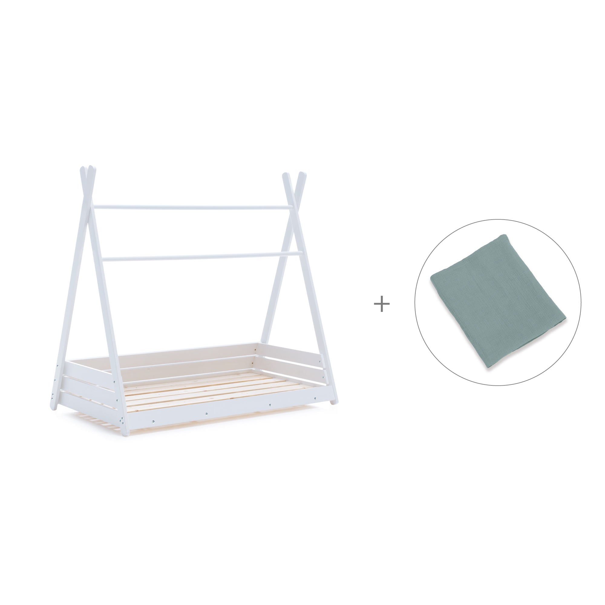 Withe Montessori bed 70x140 cm with green bedding · Homy