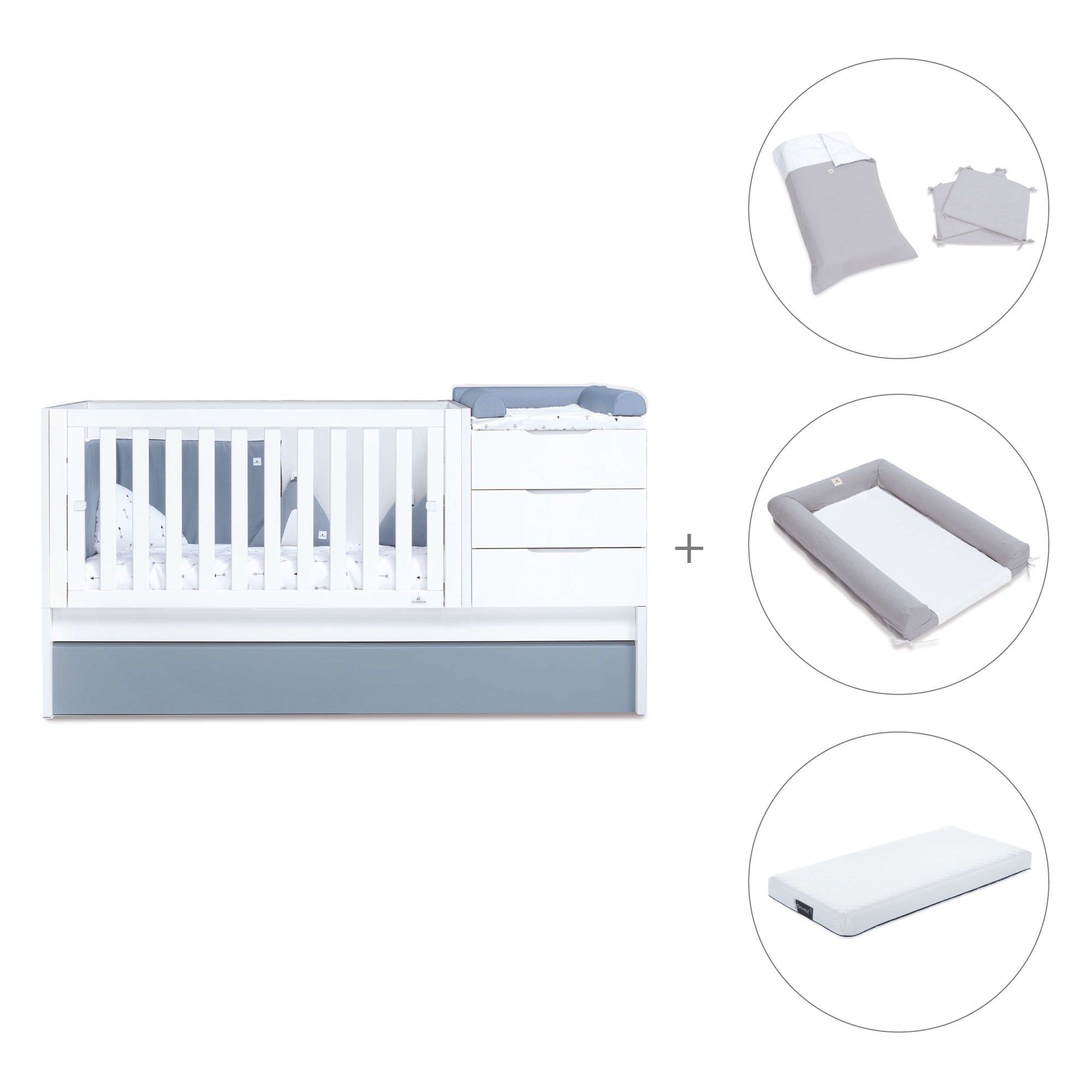 • Inclui: un edredão (ref. 626), un protetor (ref. 627), muda fraldas 60x90 cm (ref. 631) e colchão anti-sufoco 70x140 cm (ZH70-140).