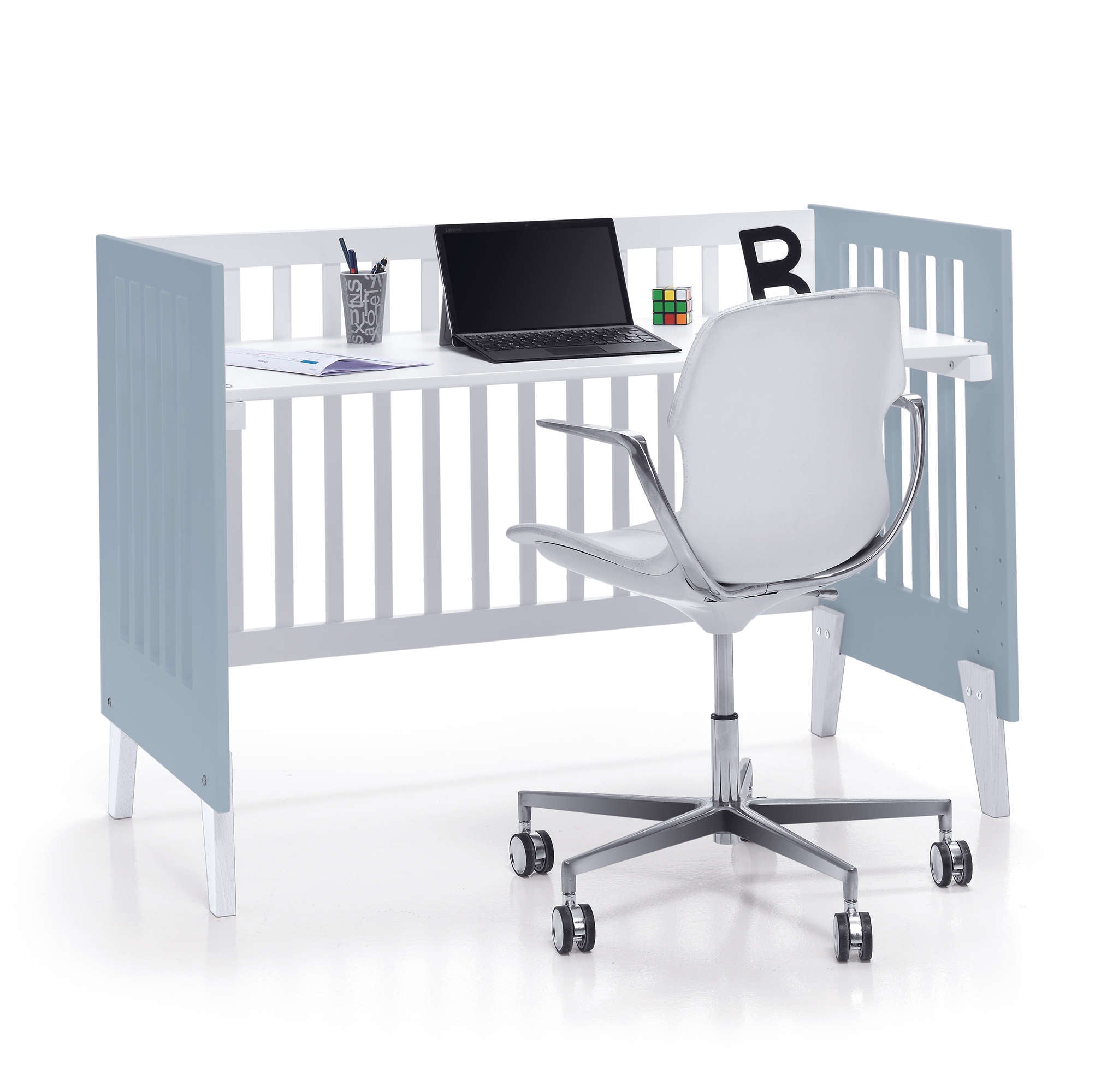 • Conversível em 7 fases sem necessidade de elementos adicionais: Mini berço co-sleeping 60x80 cm - Mini berço 60x80 cm - Sofá infantil - Secretária - Caixa de brinquedos - Berço 60x120 cm - Secretária infantil 60x120 cm.