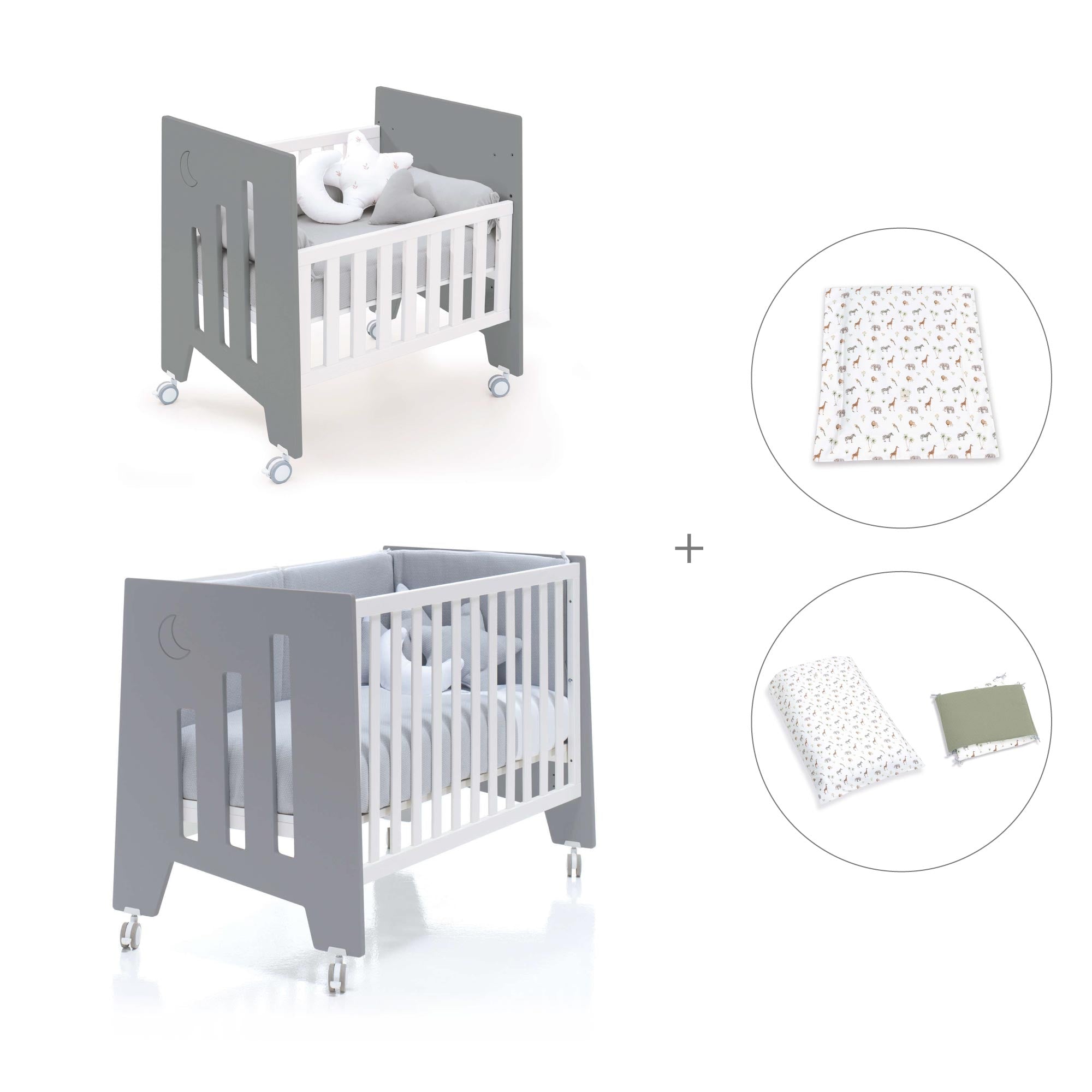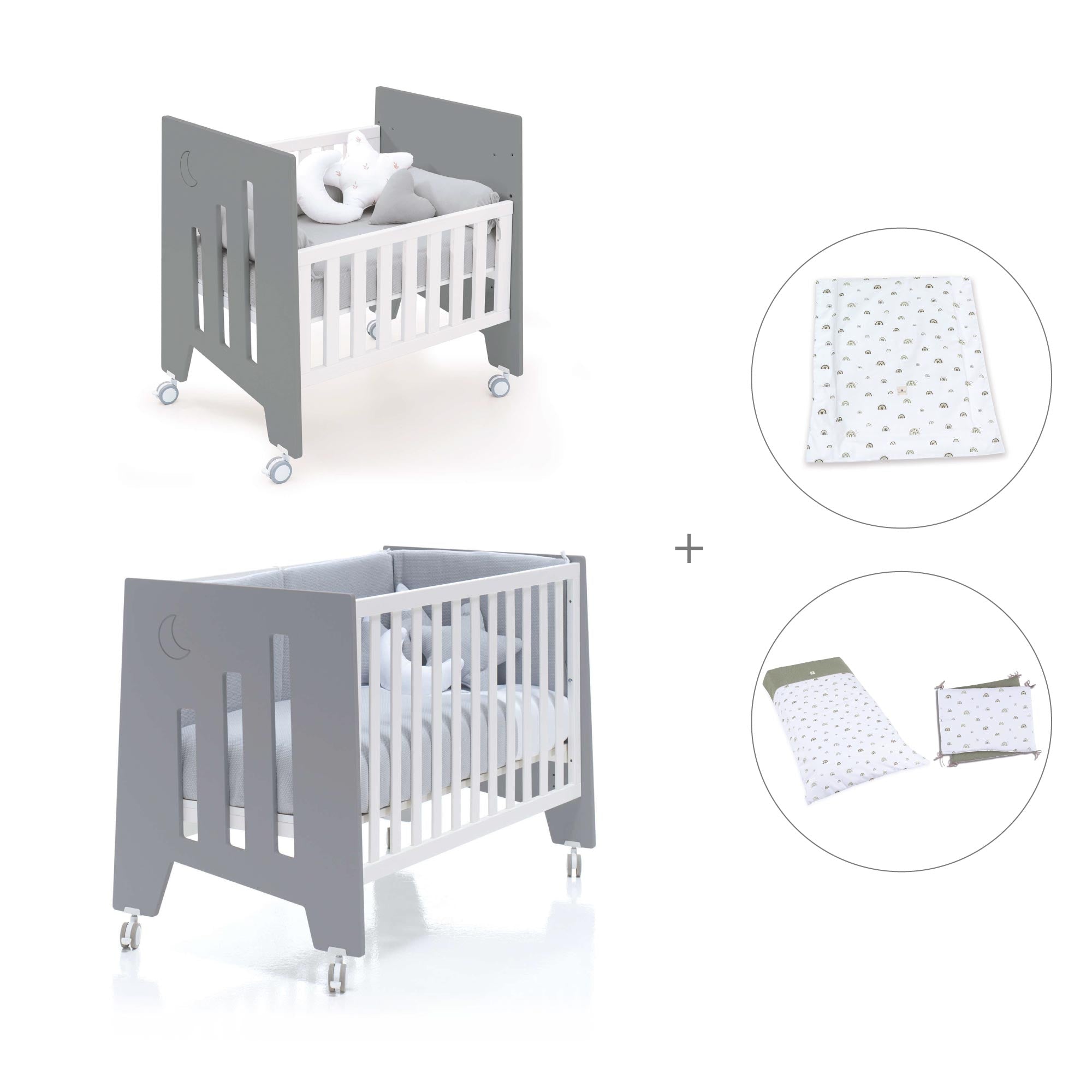 Una vez el bebé crezca y la minicuna se quede pequeña, puedes convertir la minicuna en una cuna de 60x120 cm, gracias al kit de conversión que incluye.