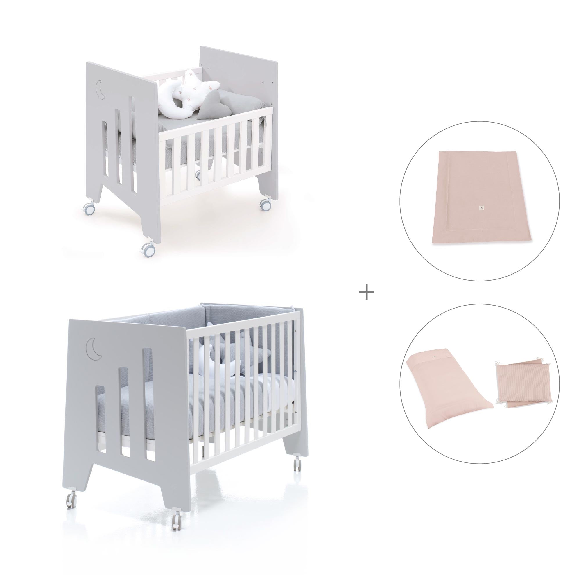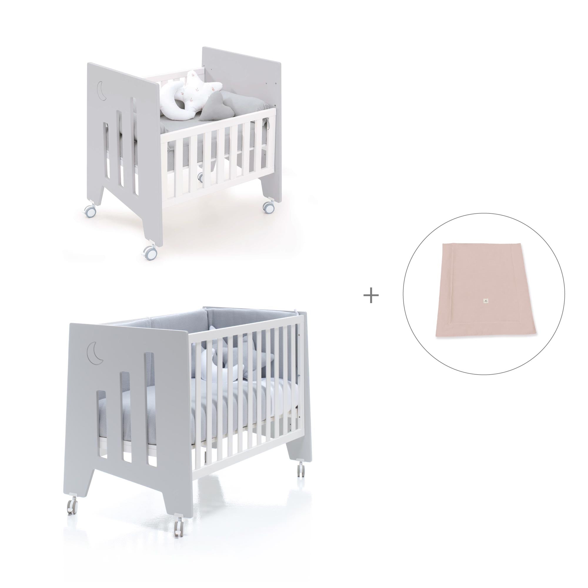 • O mini berço/berço pode ser montado sem rodas (altura das rodas: 8 cm).