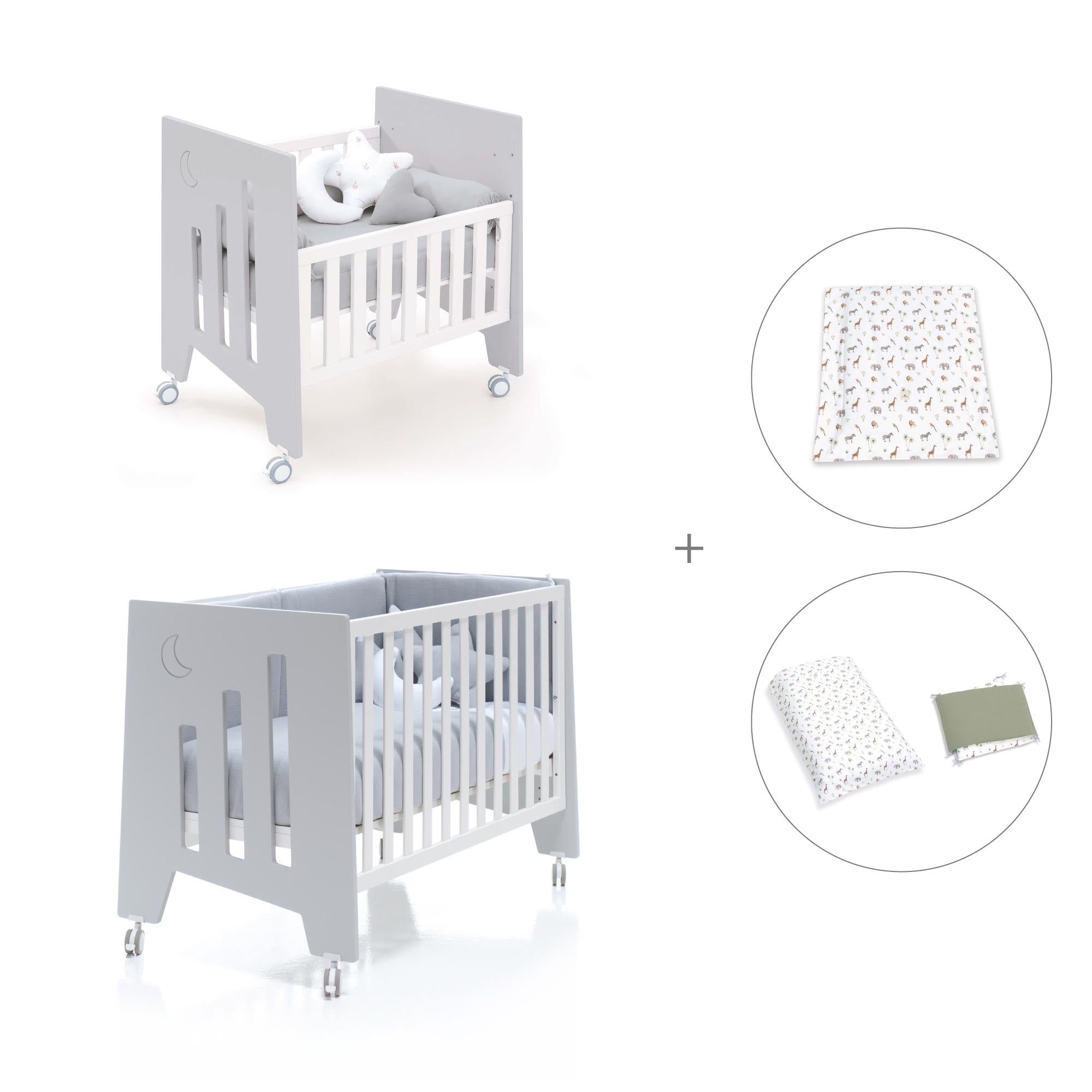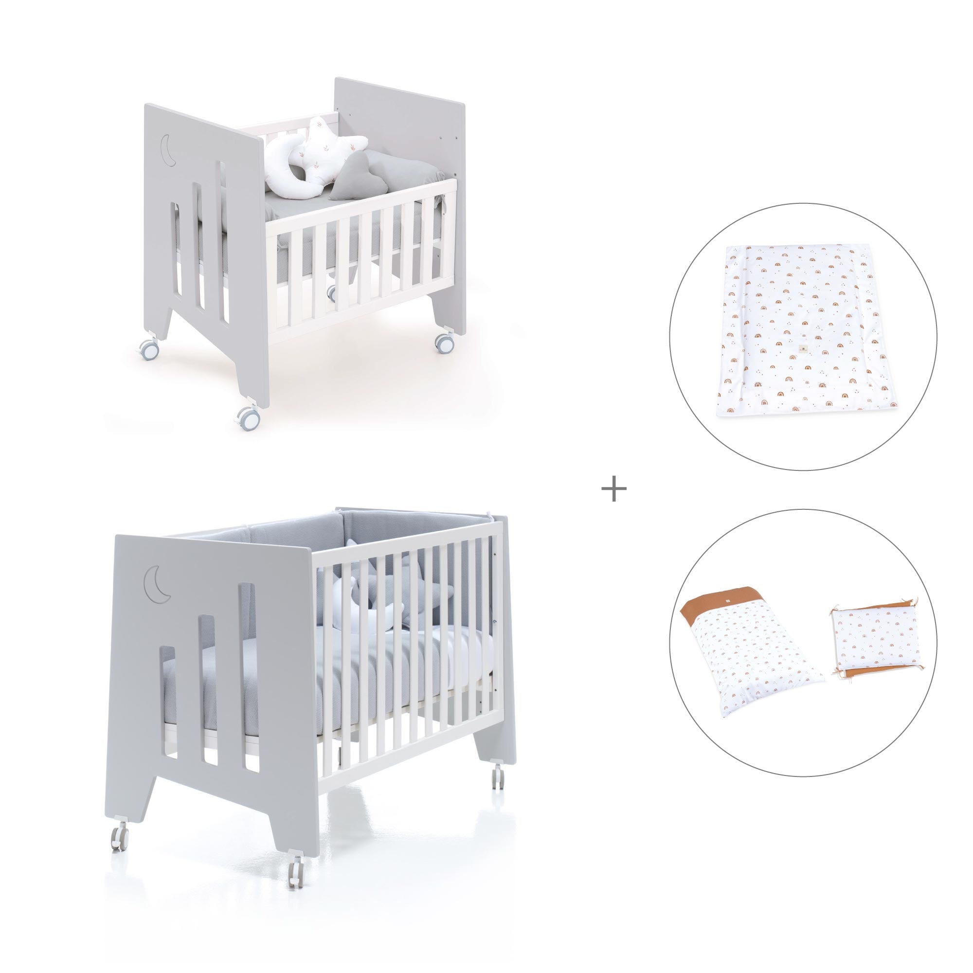 Una vez el bebé crezca y la minicuna se quede pequeña, puedes convertir la minicuna en una cuna de 60x120 cm, gracias al kit de conversión que incluye.