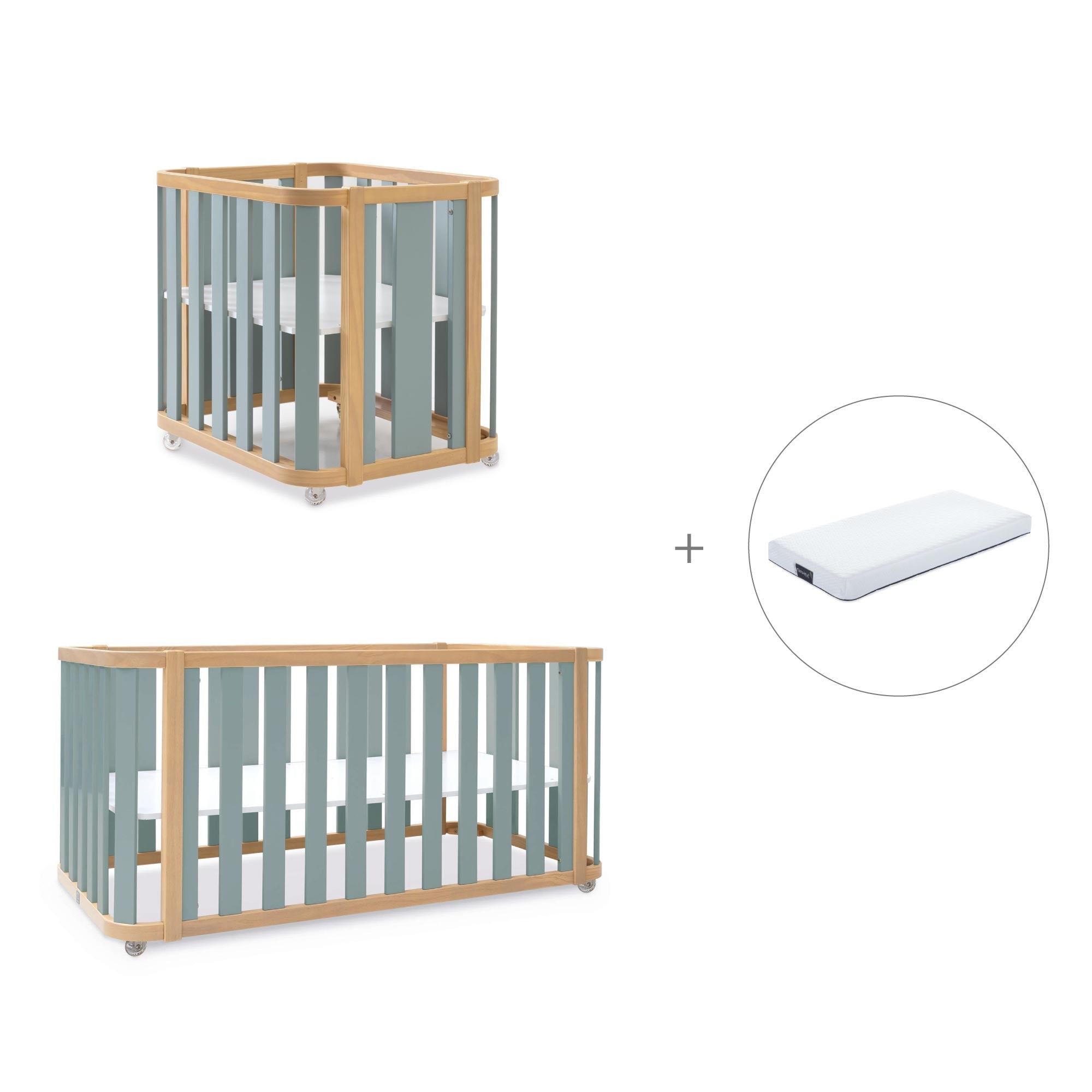Mini berço, berço e cama (4in1) madeira/verde · Crea Plus Tre C351-M5057