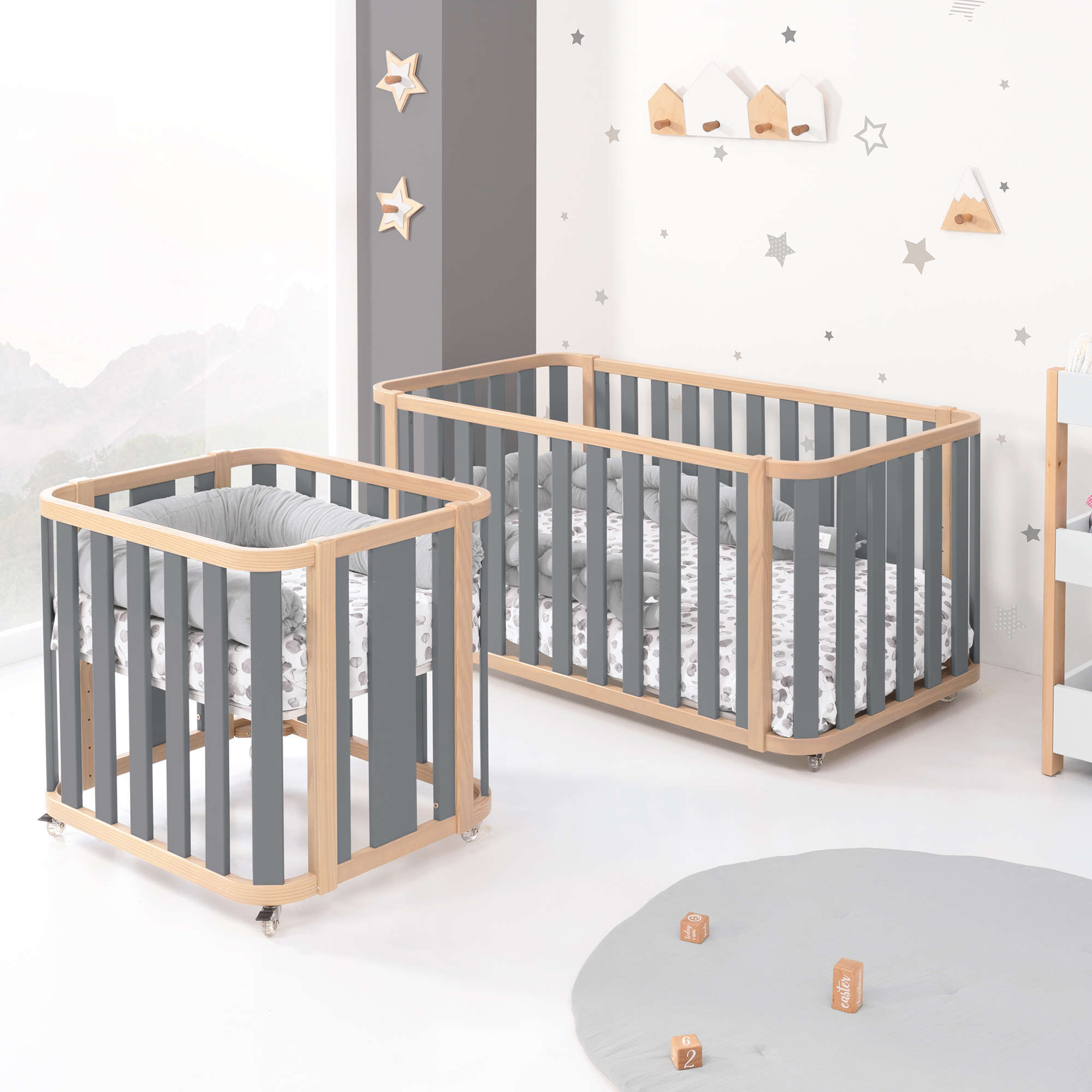 Mini berço, berço e cama (4in1) madeira/cinzento · Crea Plus Tre C351-M5058
